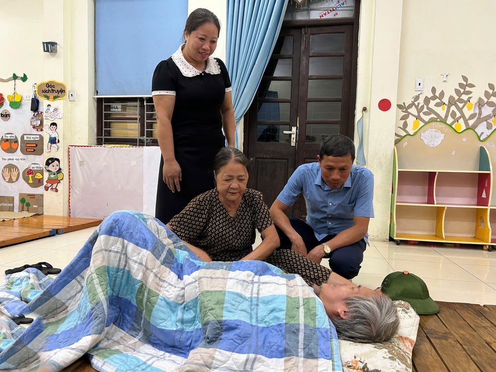 Lãnh đạo xã Hợp Thịnh thăm hỏi tình hình sức khỏe, động viên người dân phải di dời đến nơi ở tạm. |