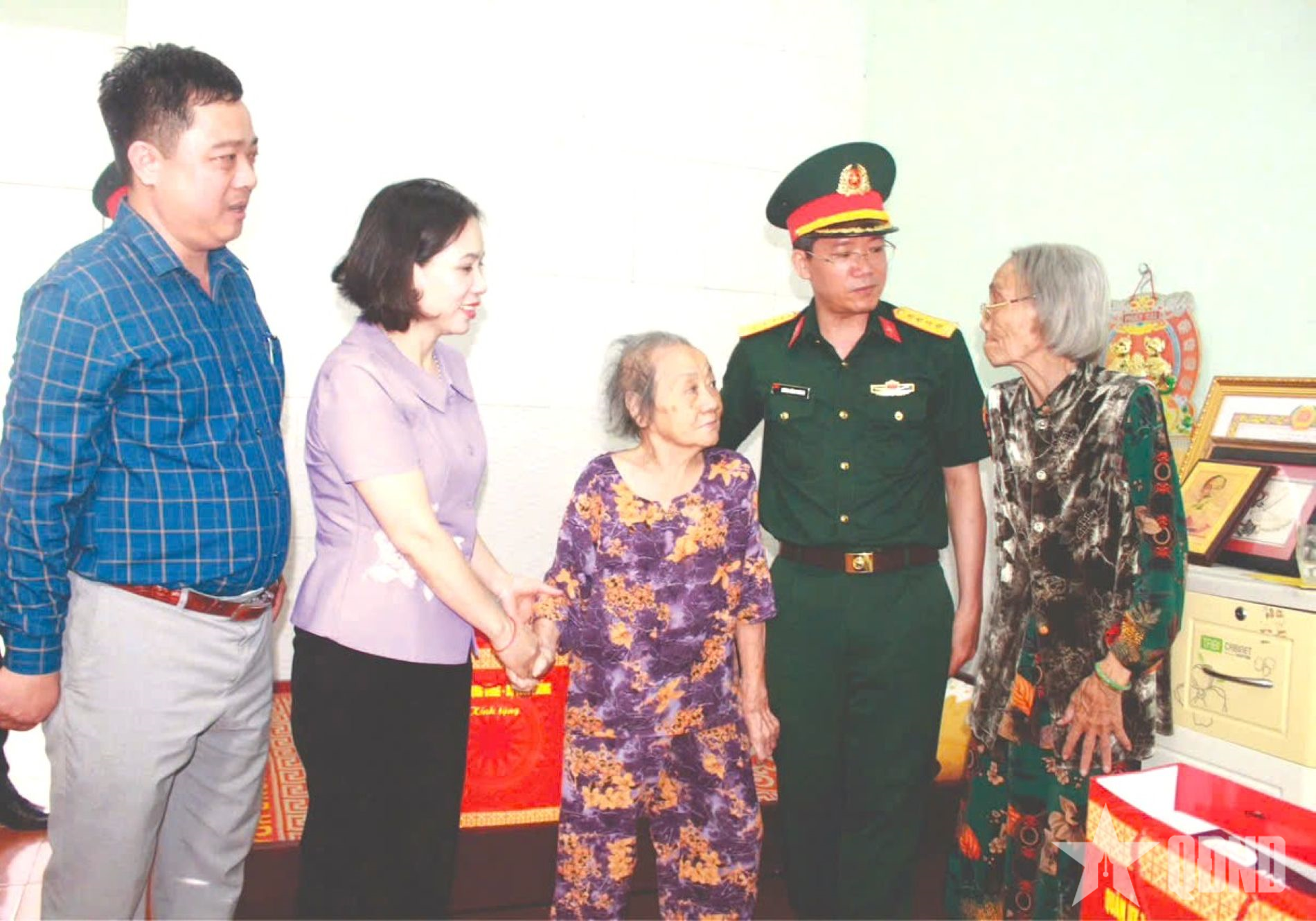 Đại tá Lương Đình Chung, Bí thư Đảng ủy, Chính ủy Quân khu 5 thăm hỏi, tặng quà người có công tại Trung tâm Điều dưỡng người có công tỉnh Quảng Ngãi. |