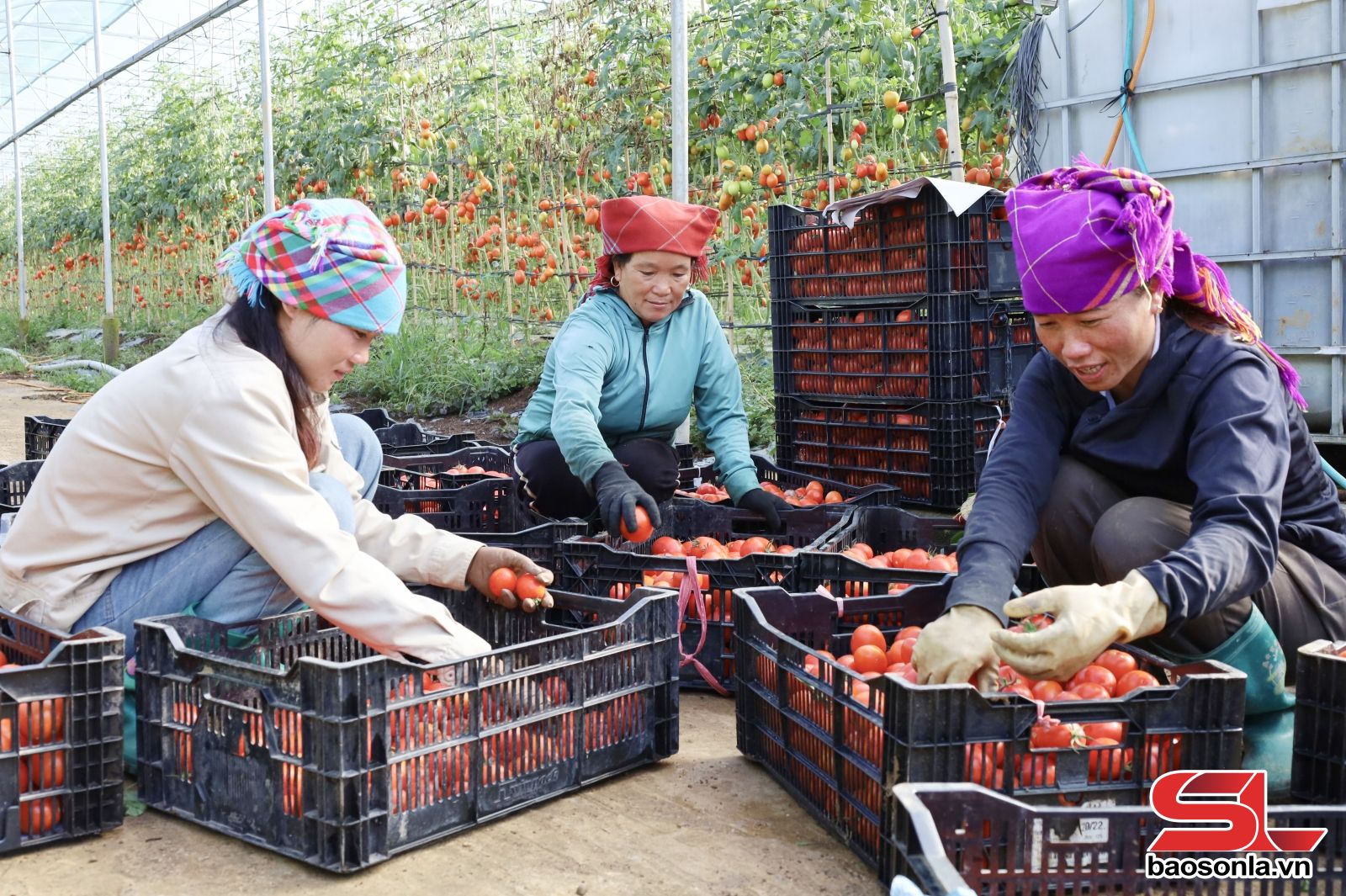 Tại khu nhà màng, những luống cà chua đang độ thu hoạch, quả sai trĩu, đỏ mọng. Quy trình sản xuất tuân thủ nghiêm ngặt các tiêu chuẩn an toàn. Đất được làm rãnh thoát nước khoa học để chống úng, cây được cắt tỉa cành tăm, nhánh phụ để tập trung dinh dưỡng nuôi quả. Đặc biệt, HTX ưu tiên sử dụng phân chuồng ủ hoai mục và phân bón hữu cơ, hạn chế tối đa thuốc bảo vệ thực vật hóa học, đảm bảo sản phẩm nông sản sạch. Các sản phẩm được dán tem truy xuất nguồn gốc, đảm bảo uy tín cho người tiêu dùng. Với 3 ha cà chua trái vụ, năng suất đạt 150 tấn/ha, giá bán trung bình tại vườn 13.000 - 14.000 đồng/kg. Bên cạnh đó, 3 ha dưa chuột canh tác ngoài trời cũng cho năng suất ấn tượng 60 tấn/ha, giá bán ổn định 7.000 - 8.000 đồng/kg.
