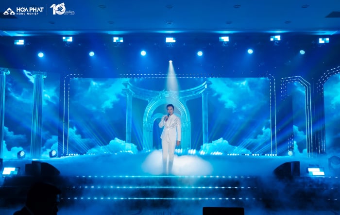 Dengan suara yang kuat dan teknikal, menghubungkan secara halus dengan penonton, Dong Hung dengan mahir mencipta semula perjalanan 10 tahun yang telah dilalui oleh Pertanian Hoa Phat.