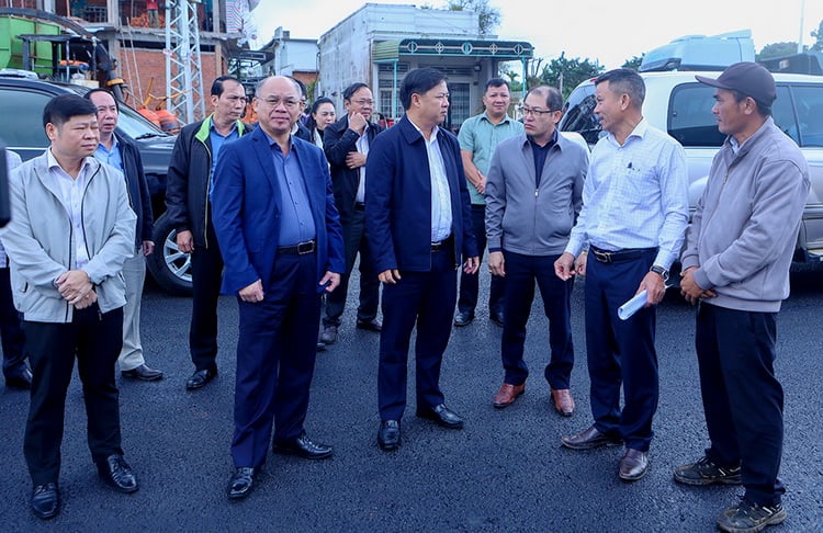 Kumpulan kerja memeriksa bidang Komponen 3 Projek Lebuhraya Khanh Hoa - Buon Ma Thuot Fasa 1 dan Projek Pelaburan Pembinaan Jalan Ho Chi Minh , pintasan Timur Bandar Buon Ma Thuot, Wilayah Dak Lak (jalan pintasan Timur). Dengan itu, dengan segera memahami maklumat, mengarahkan penyelesaian kesukaran dan masalah yang timbul semasa proses pembinaan dan persiapan untuk upacara perasmian projek untuk menyambut Kongres Kebangsaan Parti Ke-14.