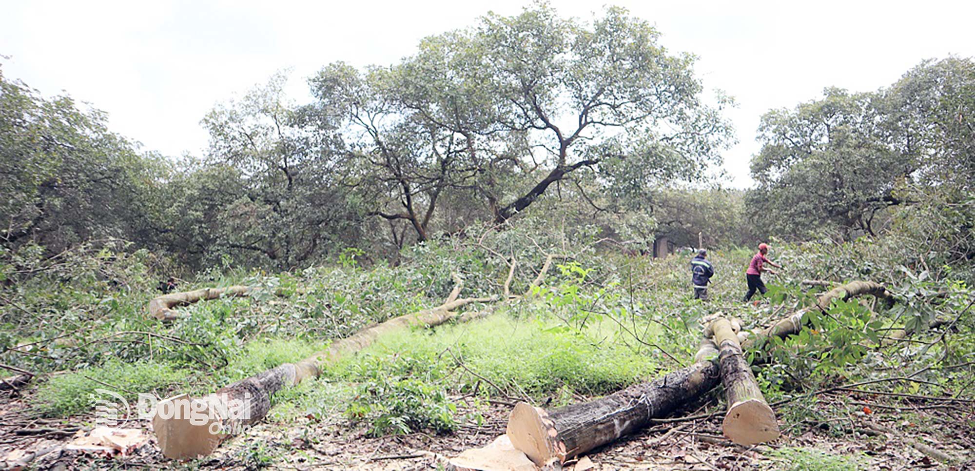 | Orang ramai menebang pokok di taman mereka untuk menyerahkan tapak untuk Projek Lebuhraya Gia Nghia - Chon Thanh melalui wad Binh Phuoc , wilayah Dong Nai. Foto: Pham Tung |