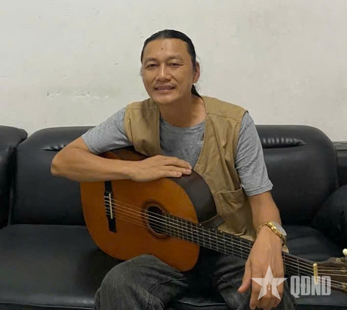 Tran Lam dengan gitar mencipta lagu untuk menceriakan pasukan bola sepak Vietnam. |