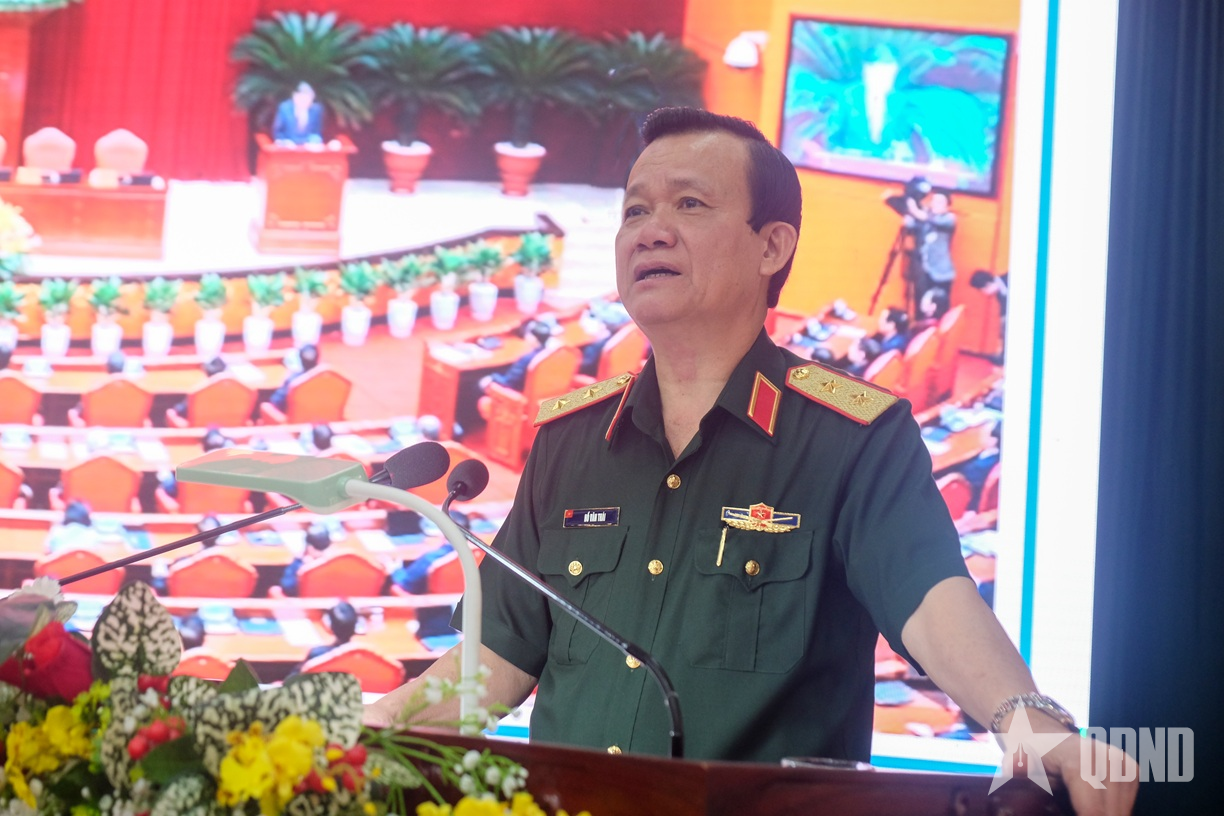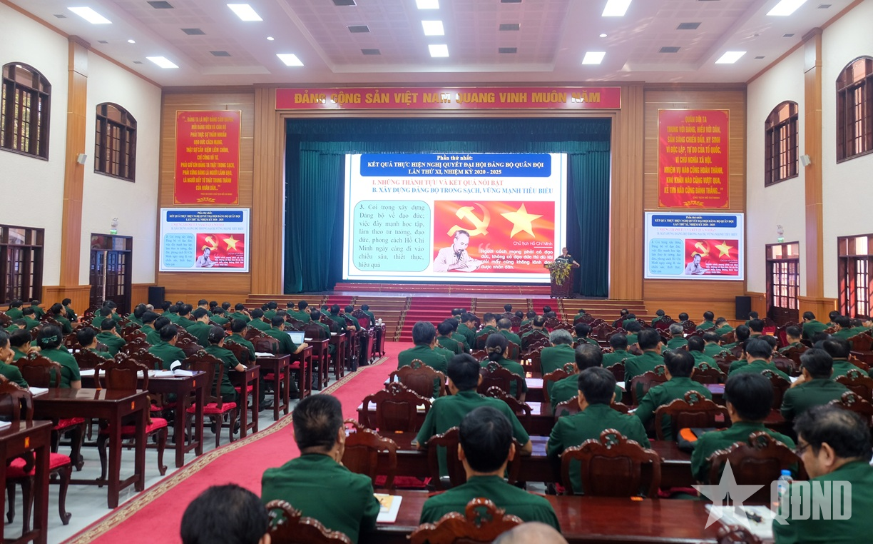 Persidangan itu mendengar Leftenan Jeneral Ho Van Thai, Setiausaha Parti dan Pesuruhjaya Politik Wilayah Tentera 9, mengumumkan secara ringkas keputusan Persidangan Ke-14 Jawatankuasa Pusat Parti Ke-13 dan menyebarkan, mengerahkan dan melaksanakan Resolusi Kongres Parti Tentera Ke-12, penggal 2025-2030.