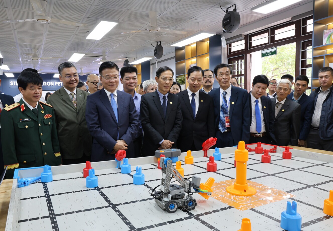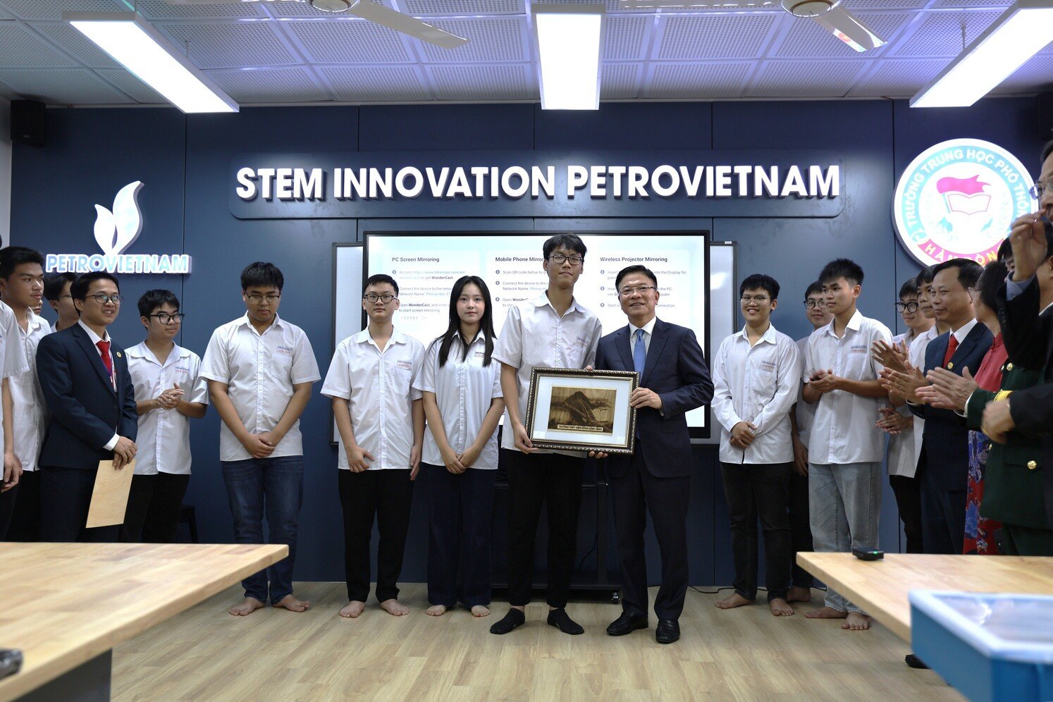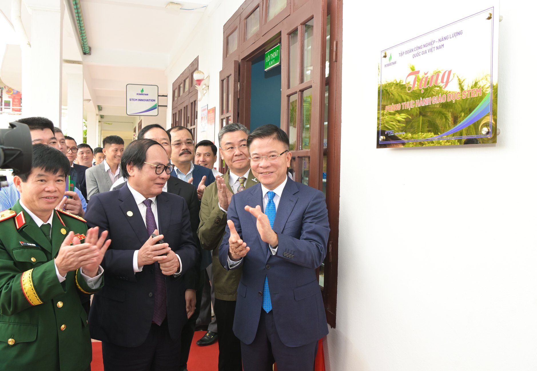 Bilik Pendidikan Praktikal Inovasi STEM Petrovietnam telah digunakan secara rasmi dengan kehadiran pemimpin Kerajaan, pemimpin Petrovietnam, pemimpin wilayah Thanh Hoa dan komuniti sekolah. Ini adalah ruang pembelajaran moden, direka mengikut piawaian antarabangsa NGSS, ISTE, CSTA, memenuhi sepenuhnya keperluan untuk pengajaran antara disiplin, amalan eksperimen dan penyelidikan saintifik pelajar.