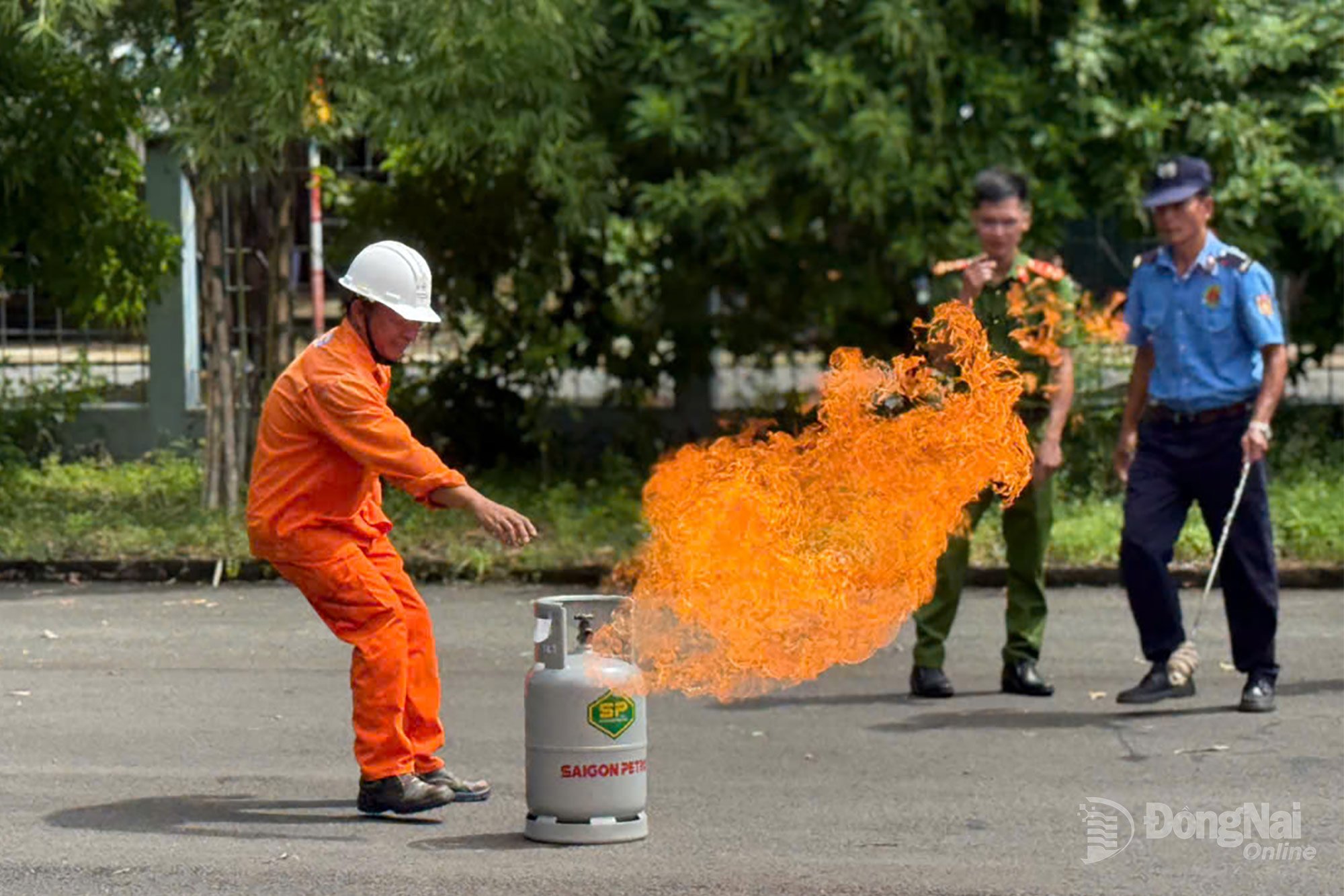 | Cara mengendalikan kebakaran silinder gas. Foto: Ngoc Bich |