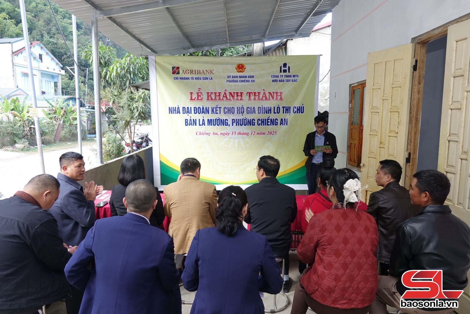 Rumah setingkat keluarga Cik Lo Thi Chu, dengan keluasan 50 m², merangkumi 2 bilik tidur, 1 ruang tamu, dan dapur. Pembinaan bermula pada 20 November 2025, dan siap selepas hampir sebulan kerja. Jumlah kos pembinaan ialah 90.7 juta VND, di mana Cawangan Agribank To Hieu Son La dan Syarikat Berhad Satu Ahli Huu Hao Tay Bac menyumbang 60 juta VND; keluarga itu menyumbang 30.7 juta VND. Jawatankuasa Rakyat Wad Chieng An menggerakkan organisasi politik dan sosial serta penduduk di kampung untuk menyediakan 50 jam kerja.