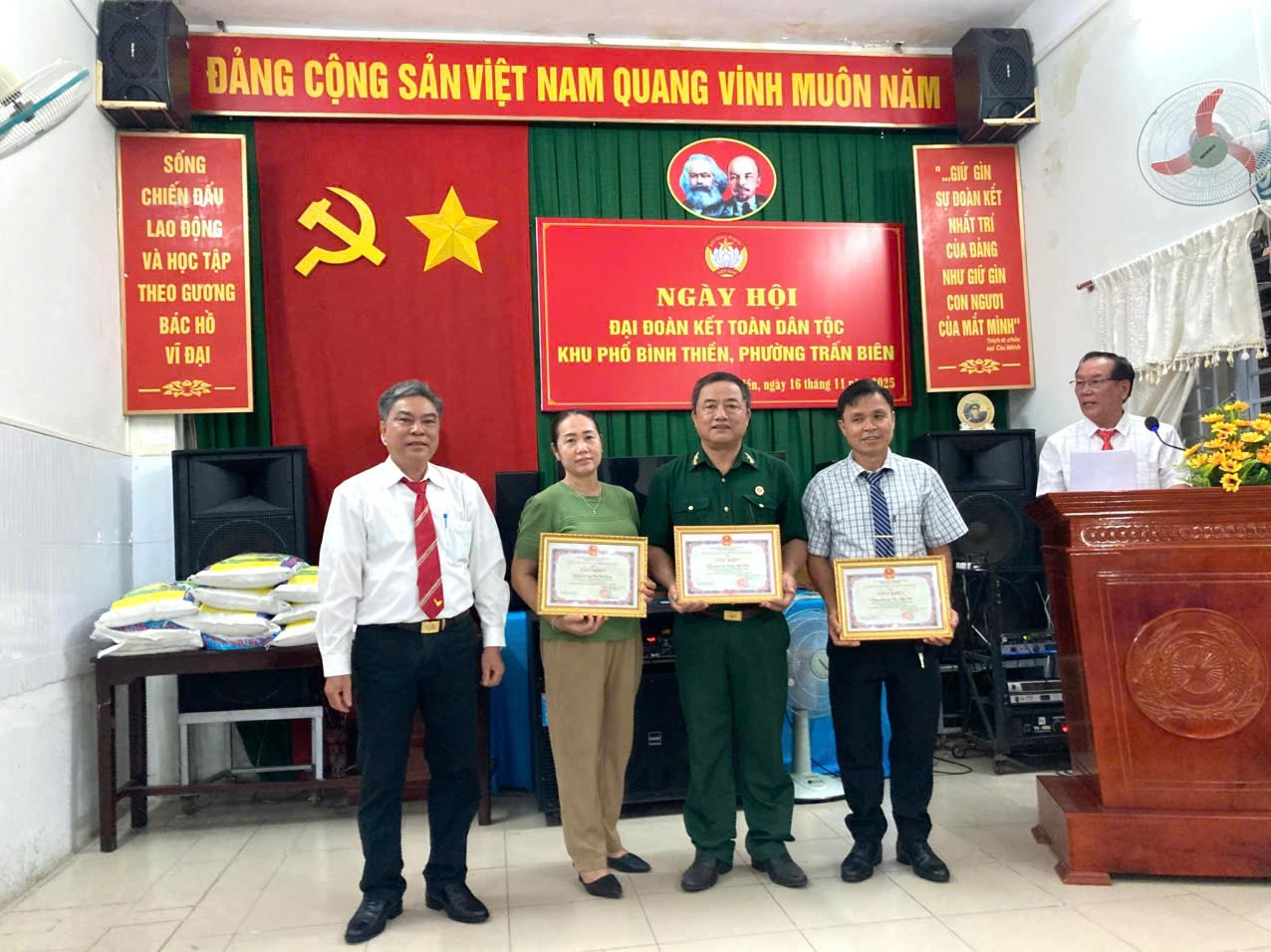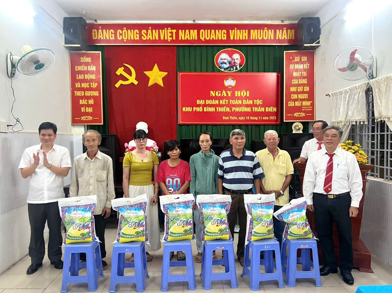 Menghadiri majlis itu ialah rakan seperjuangan Nguyen Van Hoang, Naib Pengerusi Jawatankuasa Rakyat Ward Tran Bien; Luong Van Truong, Setiausaha Sel Parti, Ketua Wad Binh Thien; Nguyen Mong Diep, Timbalan Setiausaha Sel Parti, bersama jabatan, agensi dan kesatuan wad dan hampir 200 isi rumah biasa yang mewakili isi rumah di wad.