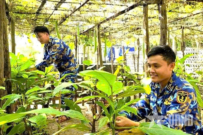 Tentera laut menjaga taman di zon khas Truong Sa, wilayah Khanh Hoa. Foto: QUAN HAI |