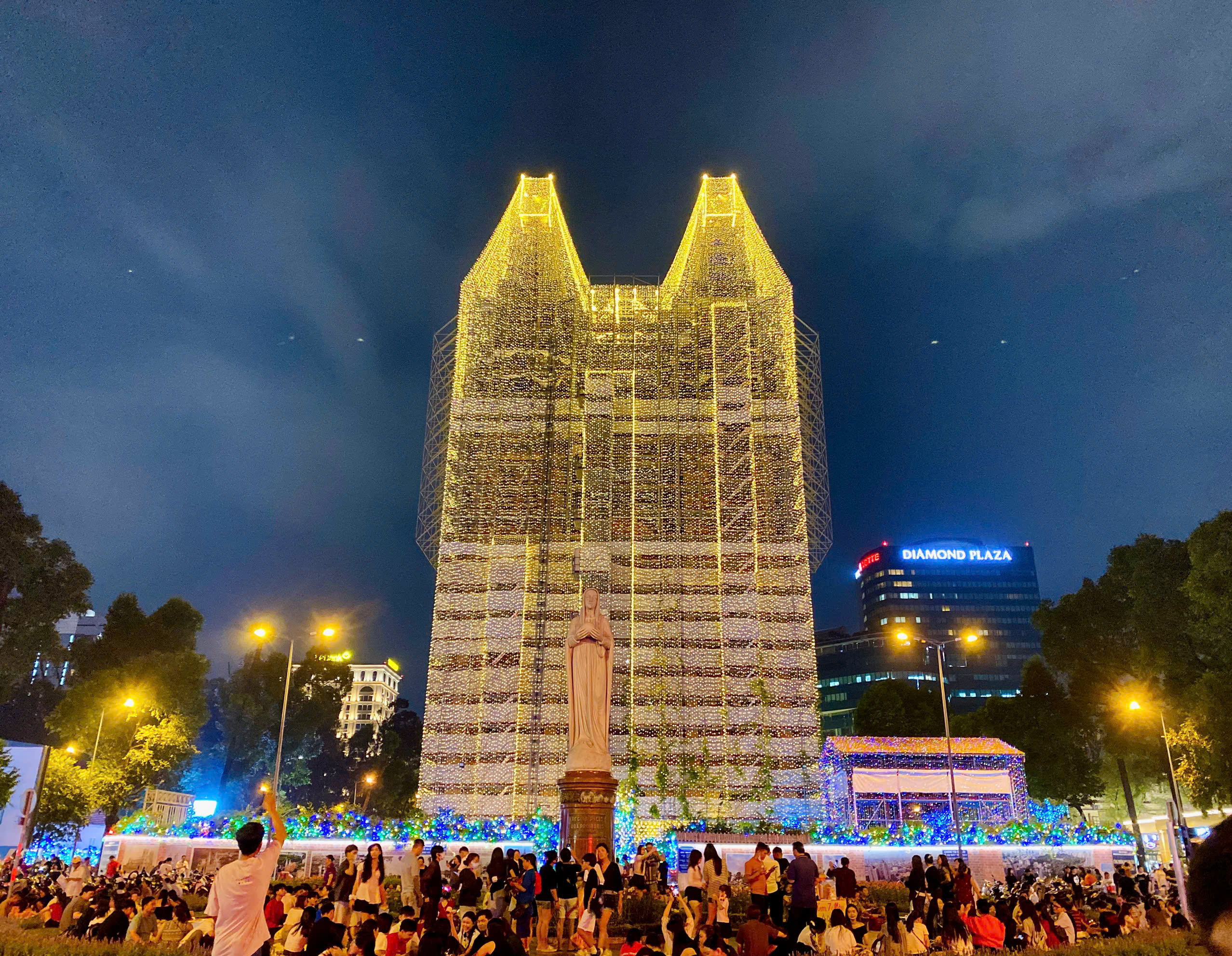 Suasana meriah di Katedral Notre Dame pada petang 1 Disember. FOTO: THAO PHUONG