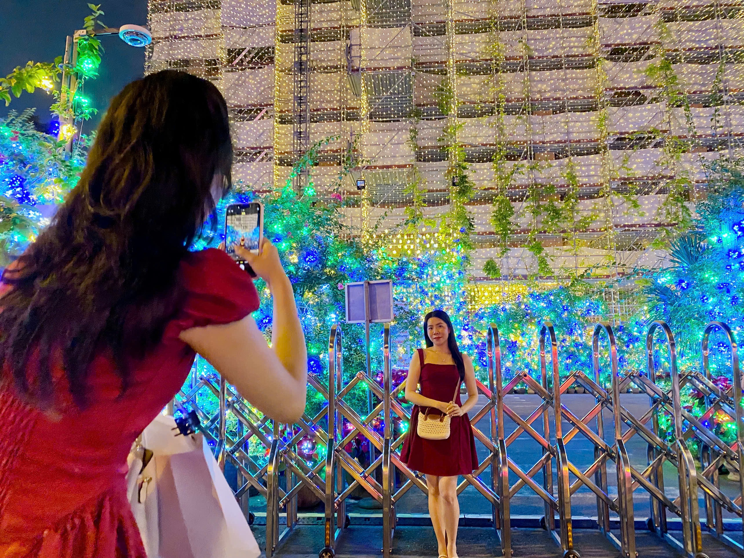 Memakai gaun merah terang untuk dipadankan dengan suasana Krismas, Cik An dengan teruja berkongsi: "Saya agak terkejut kerana ia adalah hari pertama dalam seminggu tetapi terdapat begitu ramai orang di sini. Ruang itu sangat berkilauan, menyerlahkan seluruh sudut jalan."