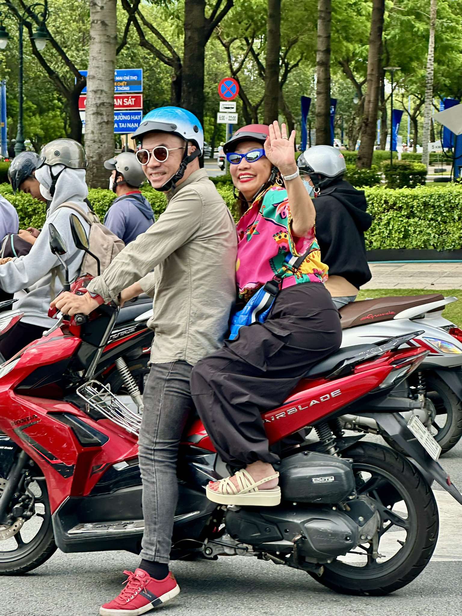 MC dan wartawan Minh Duc memandu penyanyi Tuyet Loan di sekitar Ho Chi Minh City