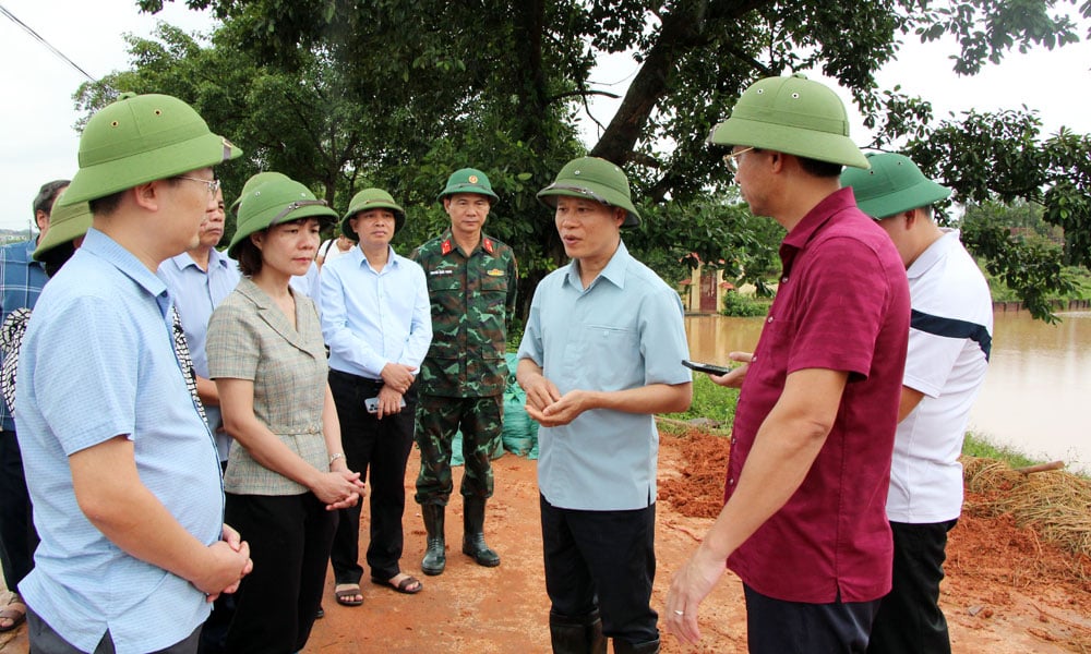 Berkenaan komune Bo Ha, komrad Mai Son mengarahkan kawasan itu segera memasang papan tanda amaran dan menghantar pasukan berkawal di kawasan banjir yang dalam bagi menghalang orang ramai melalui; pada masa yang sama, menyelaraskan prosedur untuk membubarkan dan merungkai jambatan Dong Son lama untuk mengelakkan risiko ketidakamanan semasa musim hujan dan ribut. Mengenai kejadian tanah runtuh di komune My Thai, lokaliti itu perlu segera mengatasinya.