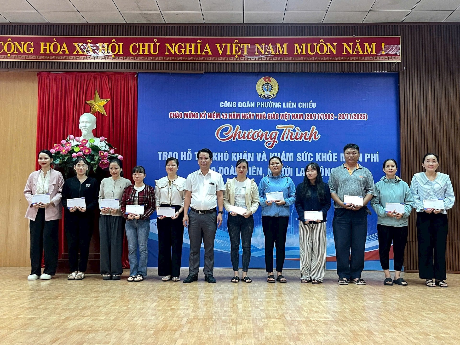 Pada kesempatan ini, Kesatuan Wad Lien Chieu menganugerahkan 32 pakej sokongan, setiap satu bernilai 2 juta VND, kepada ahli kesatuan yang terjejas akibat banjir daripada belanjawan Persekutuan Buruh Bandar; menganugerahkan 30 hadiah, setiap satu bernilai 500,000 VND kepada ahli kesatuan dalam keadaan sukar dalam kesatuan prasekolah bukan awam dan kesatuan prasekolah bebas, daripada belanjawan wad.