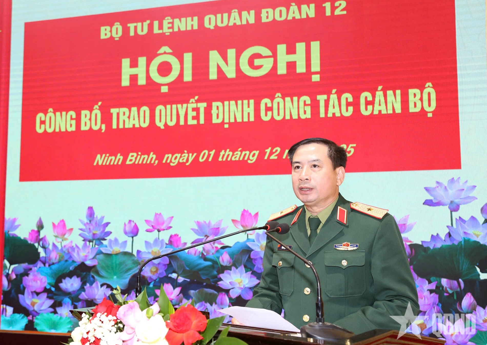 Bercakap di persidangan itu, Mejar Jeneral Tran Dai Thang, Pesuruhjaya Politik Kor ke-12, mengucapkan tahniah kepada pegawai yang menerima keputusan itu, dan pada masa yang sama meminta supaya dalam jawatan baharu mereka dengan tanggungjawab yang lebih tinggi dan skop yang lebih luas, setiap pegawai mesti secara proaktif memupuk keupayaan kepimpinan, perintah dan nasihat mereka; membina perpaduan dan perpaduan, berinovasi kaedah kerja; fokus pada peningkatan kualiti latihan, kesediaan memerangi, membina disiplin dan disiplin, dan terus berusaha untuk berjaya menyelesaikan tugas yang diberikan.