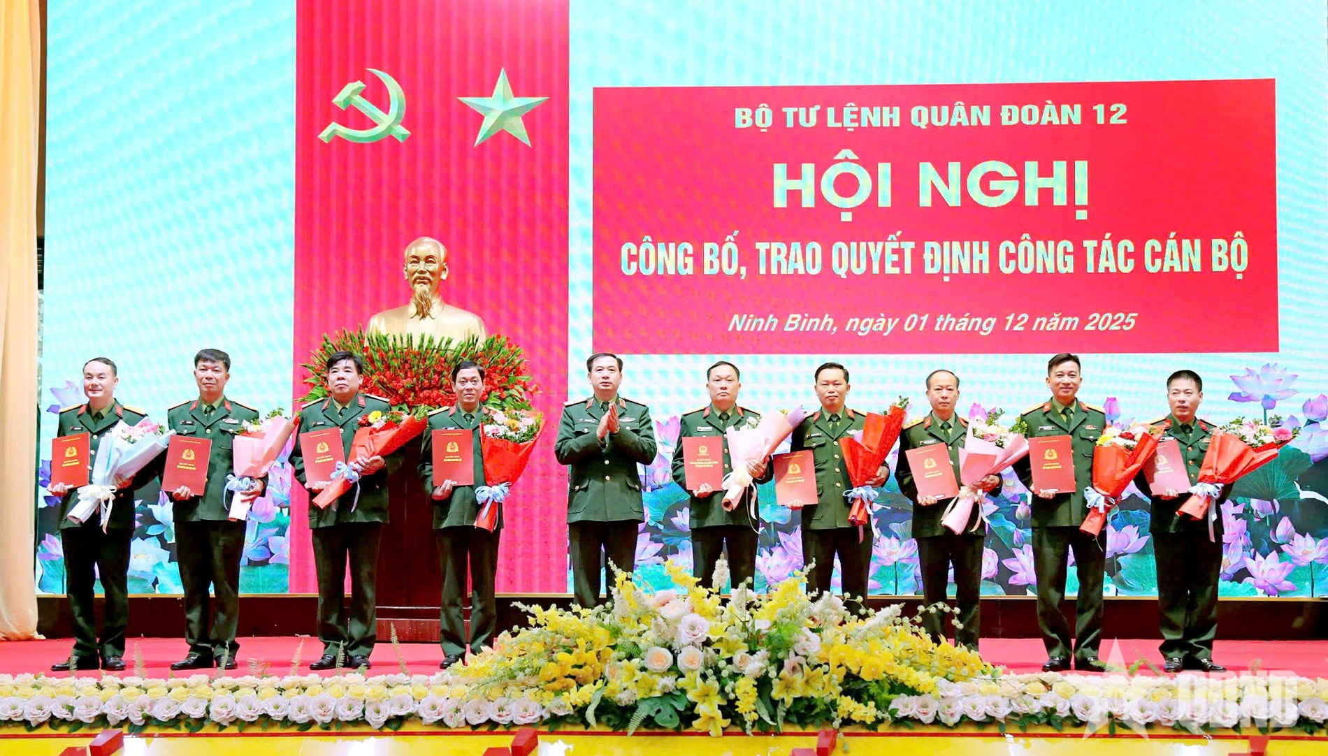 Pada persidangan itu, Komando Kor mengumumkan keputusan Menteri Pertahanan Negara mengenai pelantikan pegawai. Kolonel Do Trung Dung, Komander Divisyen 312, dilantik ke jawatan Timbalan Ketua Staf Kor ke-12; Leftenan Kolonel Nguyen Quoc Trung dilantik ke jawatan Komander Bahagian 312; Leftenan Kolonel Phung Xuan Tung telah dilantik ke jawatan Timbalan Komander Bahagian 312 dan mengumumkan keputusan untuk menaikkan pangkat dan menaikkan gaji pegawai Kolonel dan Leftenan Kolonel untuk 37 rakan seperjuangan pada tahun 2025.