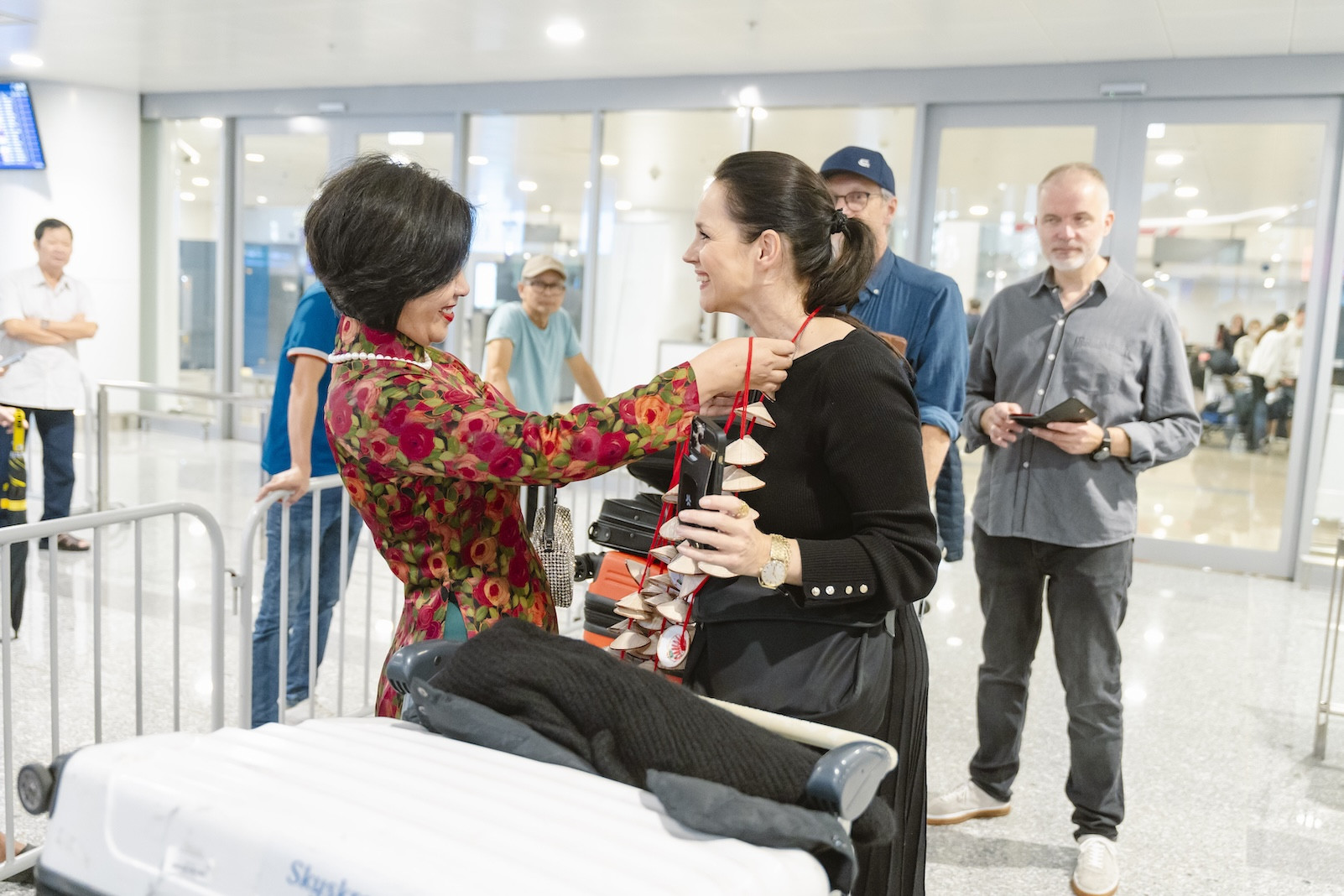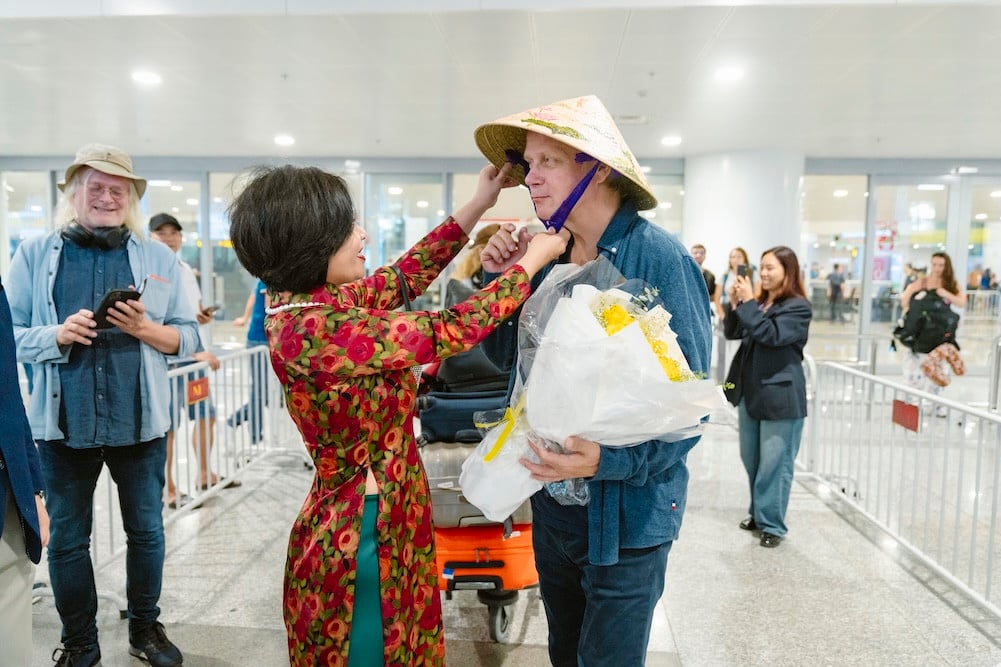 Mengalu-alukan artis di lapangan terbang ialah Encik Tony Nguyen - Pengarah Perhubungan Antarabangsa Kumpulan IB Vietnam. Penganjur membawa topi kon Vietnam dengan landskap dan alam semula jadi Vietnam yang dilukis tangan serta nama acara Secret Garden Live di Vietnam ke lapangan terbang untuk diberikan kepada dua artis itu. Datang ke Vietnam kali ini, selain dua ahli Fionnuala Sherry dan Rolf Løvland, terdapat juga orkestra. Oleh itu, pihak penganjur juga memberikan topi kon Vietnam buatan tangan kepada ahli orkestra tali, yang membuatkan artis dari Eropah sangat teruja.