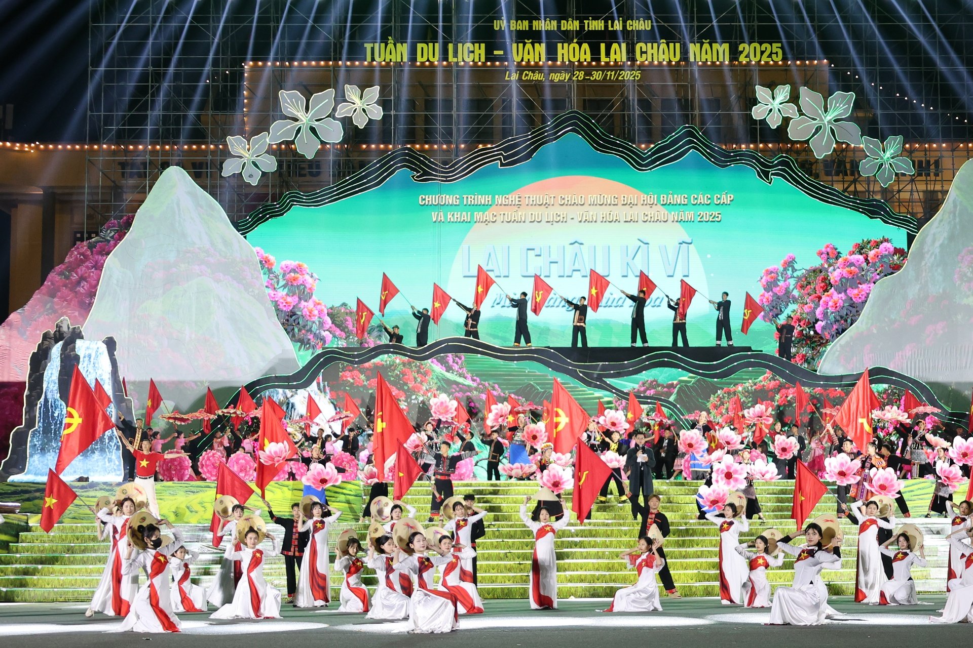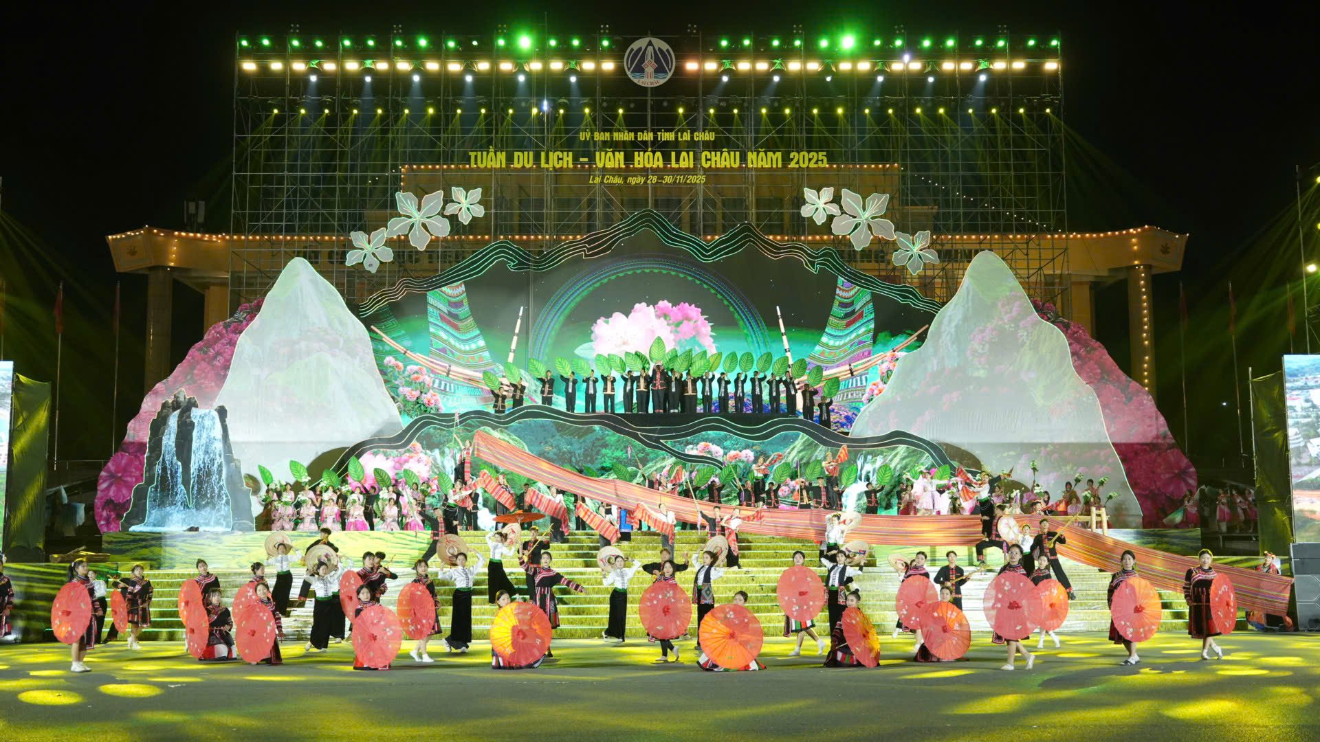 Program seni membuka Minggu Pelancongan - Kebudayaan Lai Chau 2025 akan berlangsung selama 70 minit, termasuk persembahan pembukaan dan 3 bab utama. Bab 1: Lai Chau - tanah lagenda; Bab 2: Lai Chau - simfoni warna; Bab 3: Lai Chau - aspirasi untuk mencapai jauh.