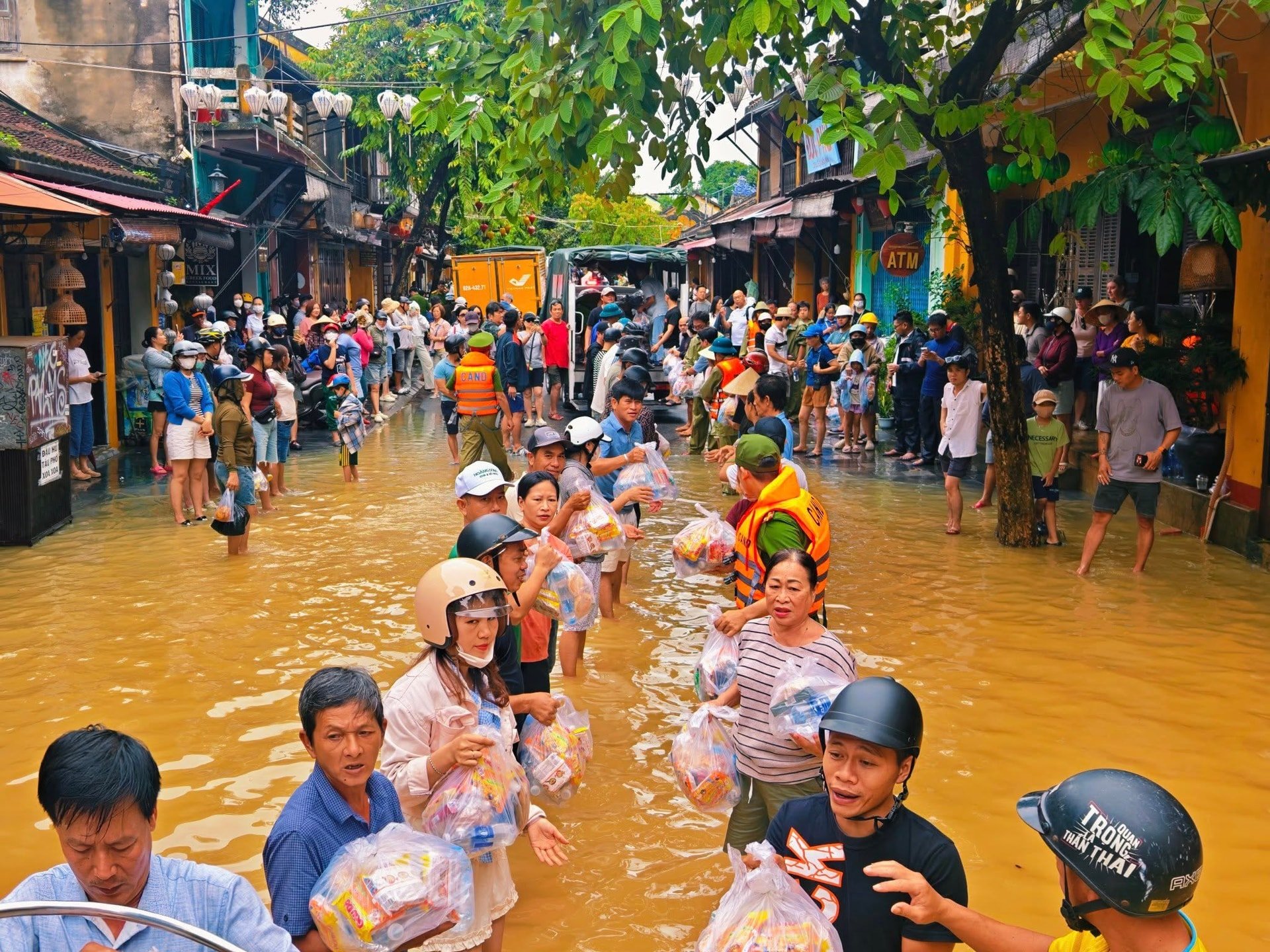 Di Hoi An, kumpulan "Nong Nan Ha Noi " - sekumpulan orang Hanoi yang tinggal di sini, hanya dalam masa 72 jam mengumpul lebih daripada 440 juta VND, menganjurkan lebih daripada seribu pakej bantuan termasuk beras, air, mi, ubat-ubatan, jaket keselamatan, dan menghantarnya ke kawasan yang telah terpencil selama beberapa hari seperti Thanh Ha, Dah Kim, Nong Son Vin.