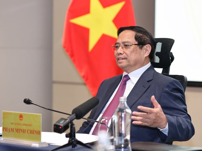 Perdana Menteri Pham Minh Chinh mempengerusikan mesyuarat dalam talian ke-23 Jawatankuasa Pemandu Kebangsaan Membanteras IUU Fishing - Foto: VGP/Nhat Bac
