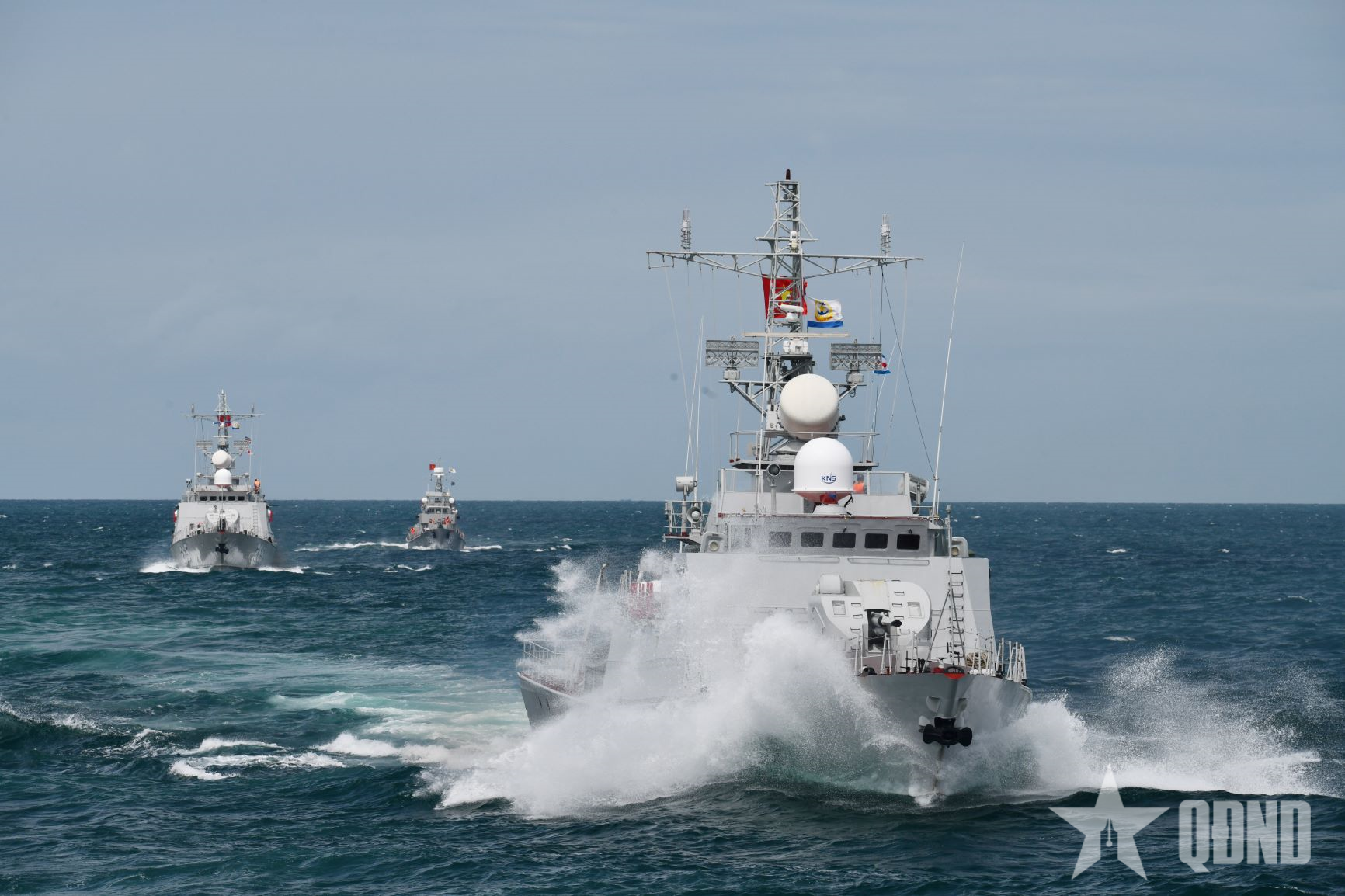 Skuadron tentera laut Wilayah Tentera Laut ke-5 menjalankan latihan di laut. Foto: QUANG DINH |