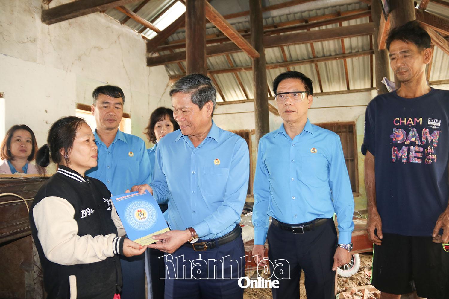 Delegasi kerja Konfederasi Buruh Am Vietnam dan Konfederasi Buruh Wilayah Khanh Hoa turut melawat dan menyokong keluarga Cik Phan Thi Kim Hong (kampung 2, komune Dien Dien) - seorang pekerja Kesatuan Sekerja HTH Production - Trading Company Limited (Taman Perindustrian Dien Phu) dengan 2 juta VND. Tembok rumah Cik Hong runtuh, semua barang miliknya rosak dalam banjir baru-baru ini.
