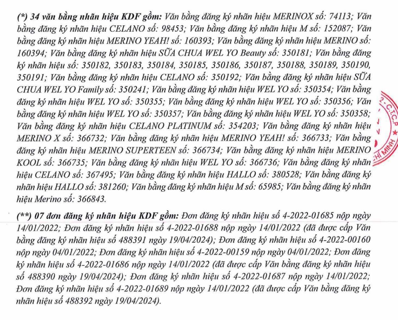 Selain itu, Lembaga Pengarah juga mengemukakan kepada pemegang saham untuk pertimbangan dan kelulusan pembatalan kontrak pemindahan No. 1 dan 2/2022/KDF-KDC mengenai pemindahan 34 tanda dagangan dan pemindahan 7 permohonan pendaftaran tanda dagangan, dan bersetuju untuk memberi kuasa dan menugaskan Lembaga Pengarah untuk menjalankan prosedur yang diperlukan bagi pemilikan tanda dagangan ini.