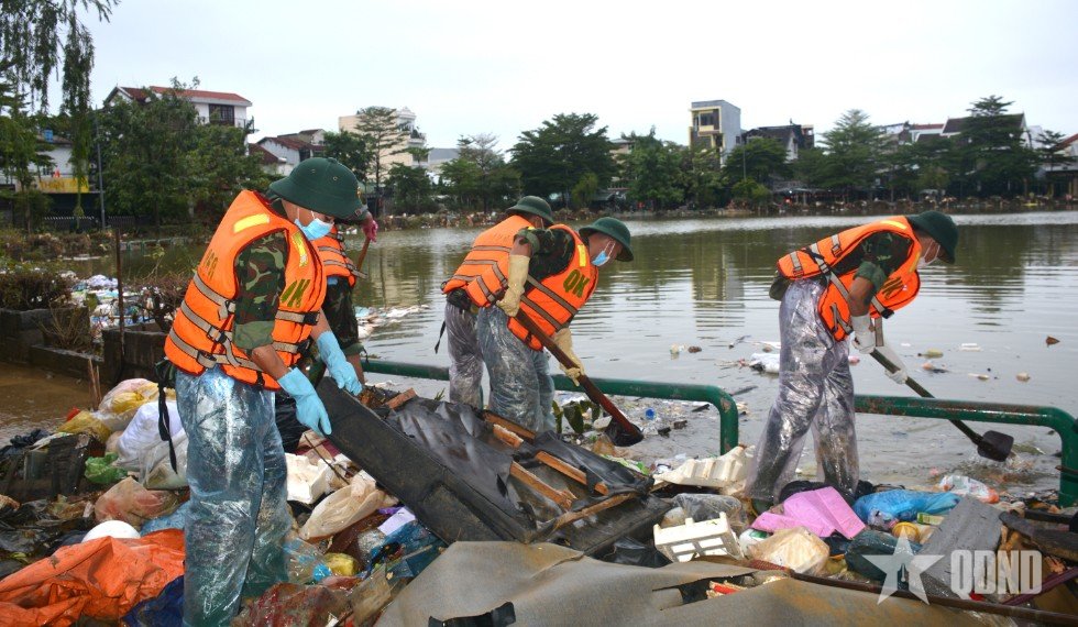 Selepas banjir berturut-turut, banyak kawasan di Bandar Hue dibanjiri dengan lumpur, sampah sarap, bangkai haiwan, dan alam sekitar telah tercemar. Mengikut arahan Komando Wilayah Tentera 4, ratusan pegawai dan askar Divisyen 968 membantu orang ramai bertindak balas terhadap bencana alam dan mengatasi akibat banjir sejak hari pertama.
