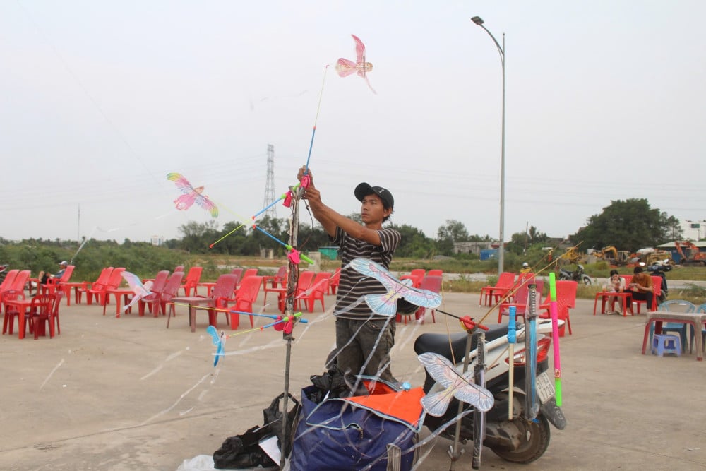 Anh Lê Hoàng Chương (phường 3, TP.Tân An) tranh thủ kiếm thêm thu nhập vào mùa diều