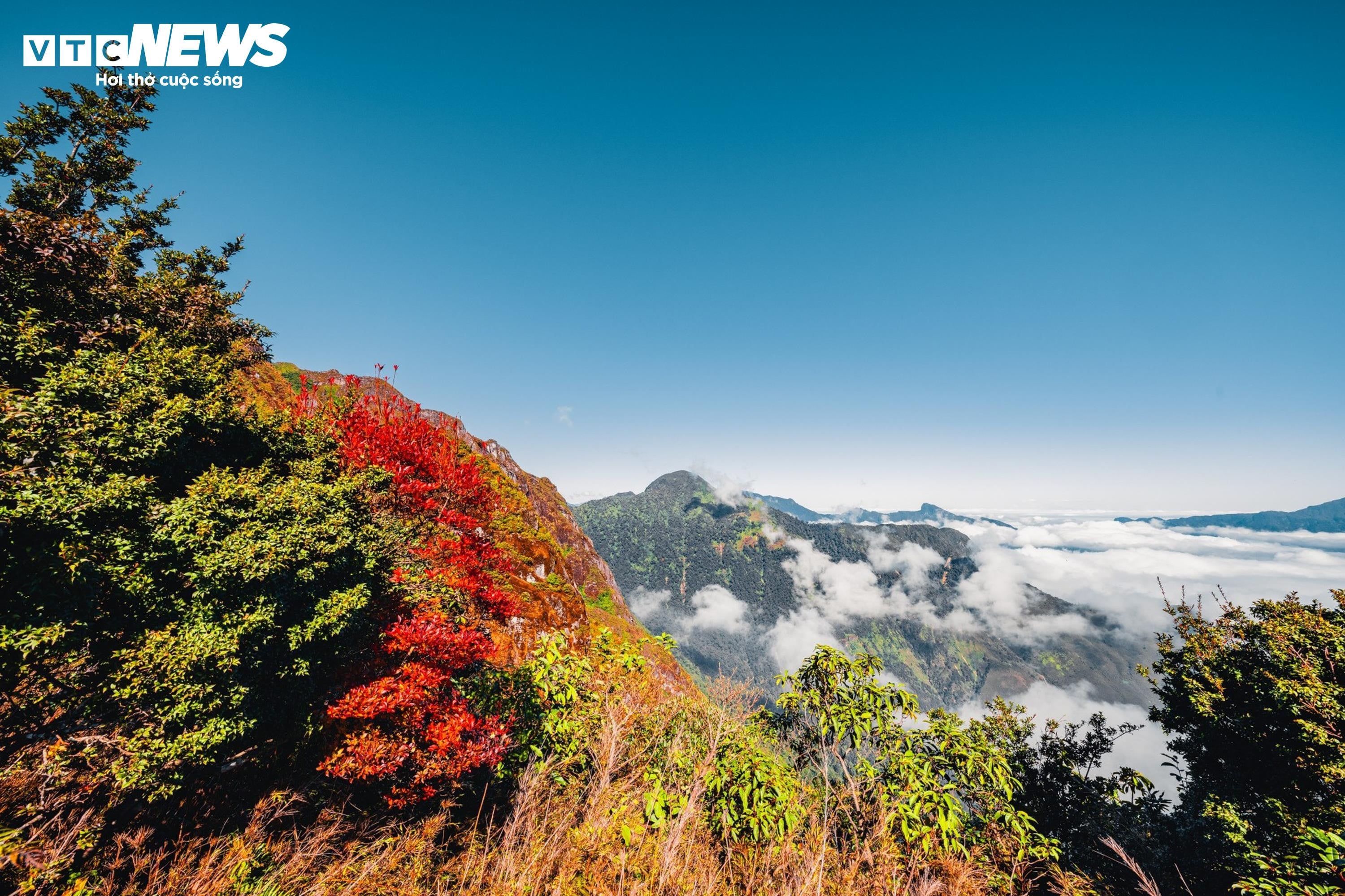 Rừng phong trên các sườn núi bắt đầu chuyển màu, tạo nên mảng đỏ - cam nổi bật giữa nền rừng xanh đặc trưng của Tây Bắc, thu hút nhiều du khách thập phương tìm đến để tận mắt chiêm ngưỡng.