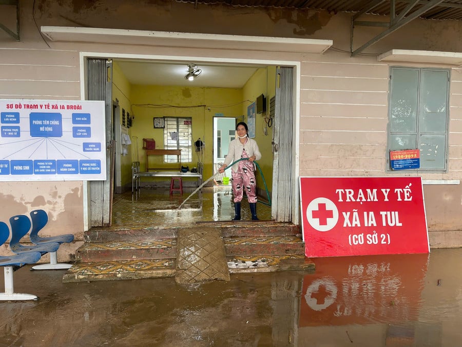 Đối với trạm y tế ở các xã phía Tây tỉnh bị ngập sâu, với tinh thần chủ động và trách nhiệm, đội ngũ cán bộ, nhân viên y tế đã kịp thời triển khai hàng loạt biện pháp. Bác sĩ Nay H’Mira, Trưởng Trạm Y tế xã Ia Sao cơ sở 1, cho biết: Trạm bị ngập sâu hơn 1 m, nhưng trước đó đơn vị đã chủ động và nhanh chóng di chuyển hồ sơ, máy tính, thuốc men, vật tư y tế và đặc biệt là tủ vắc xin qua trường học tại địa phương ở điểm cao ráo, không bị ngập, nên tất cả tài sản được bảo quản an toàn.