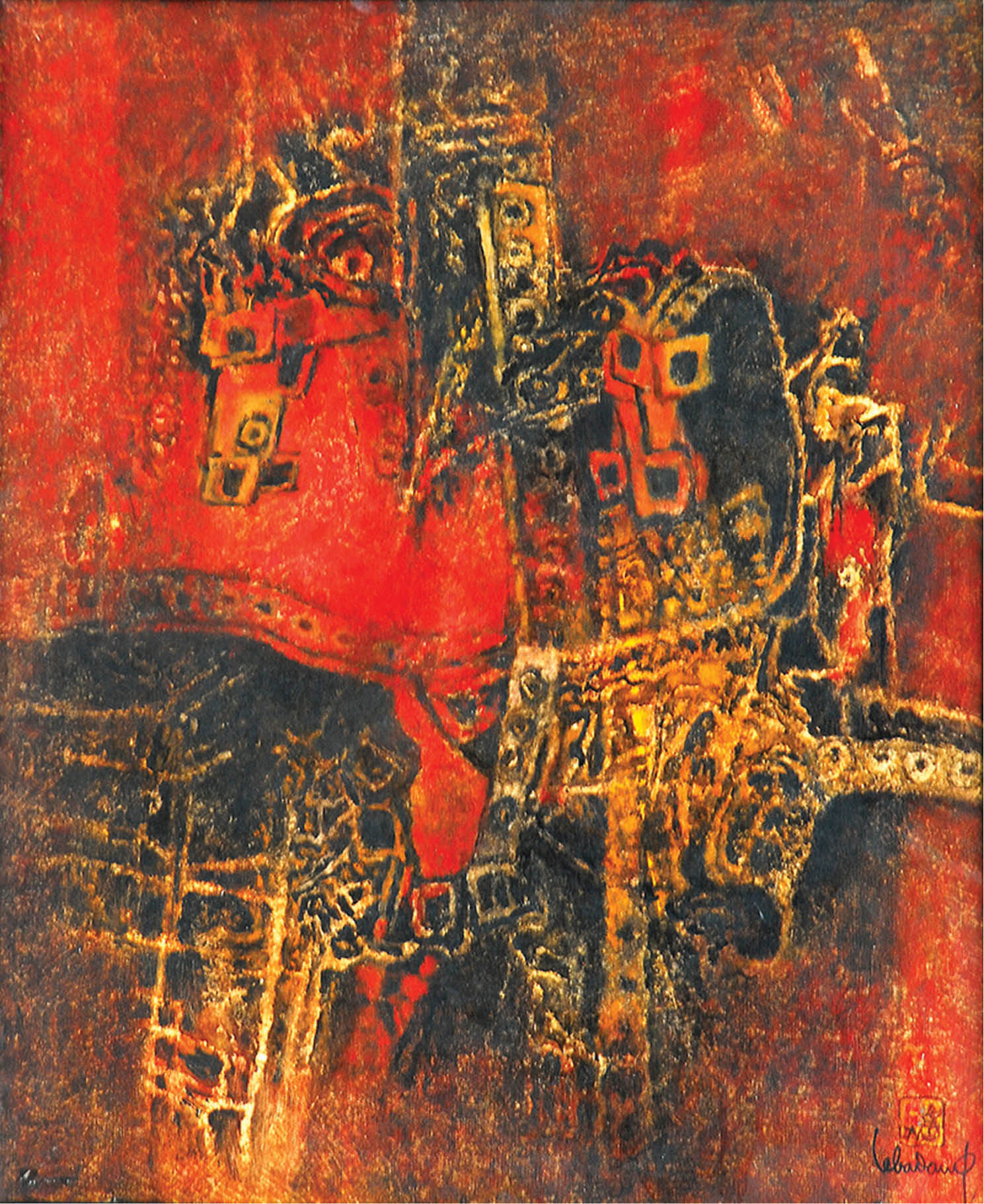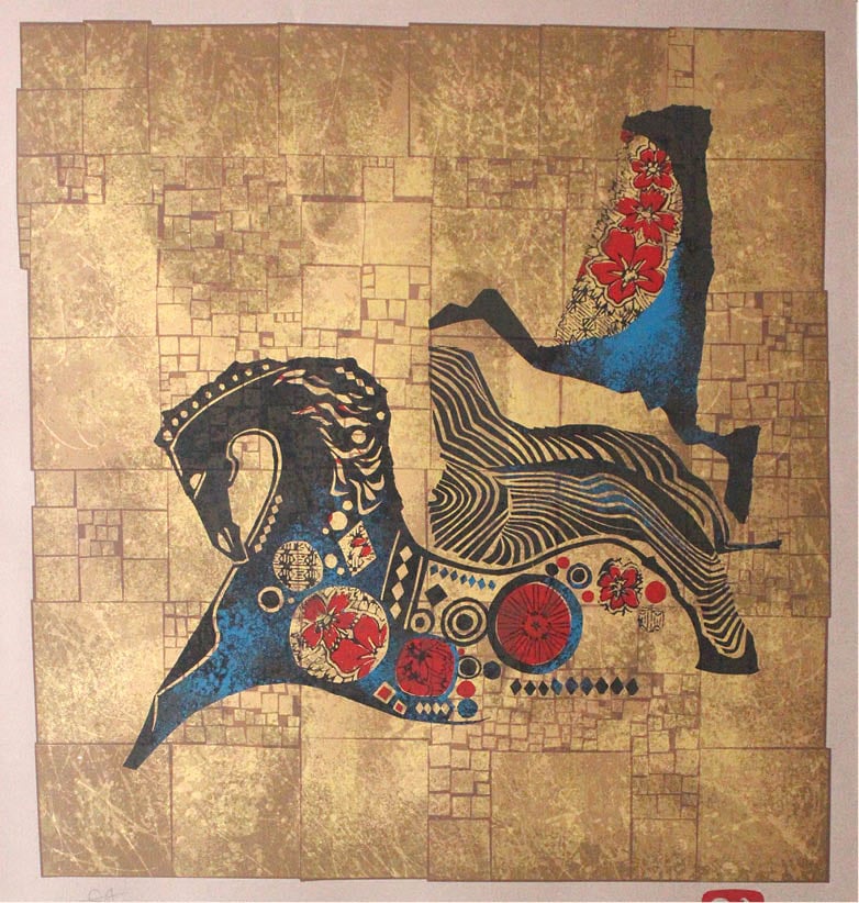| Bức tranh với họa tiết ngựa độc đáo, thể hiện sự phóng khoáng và tư duy tạo hình hiện đại của họa sĩ Lê Bá Đảng |