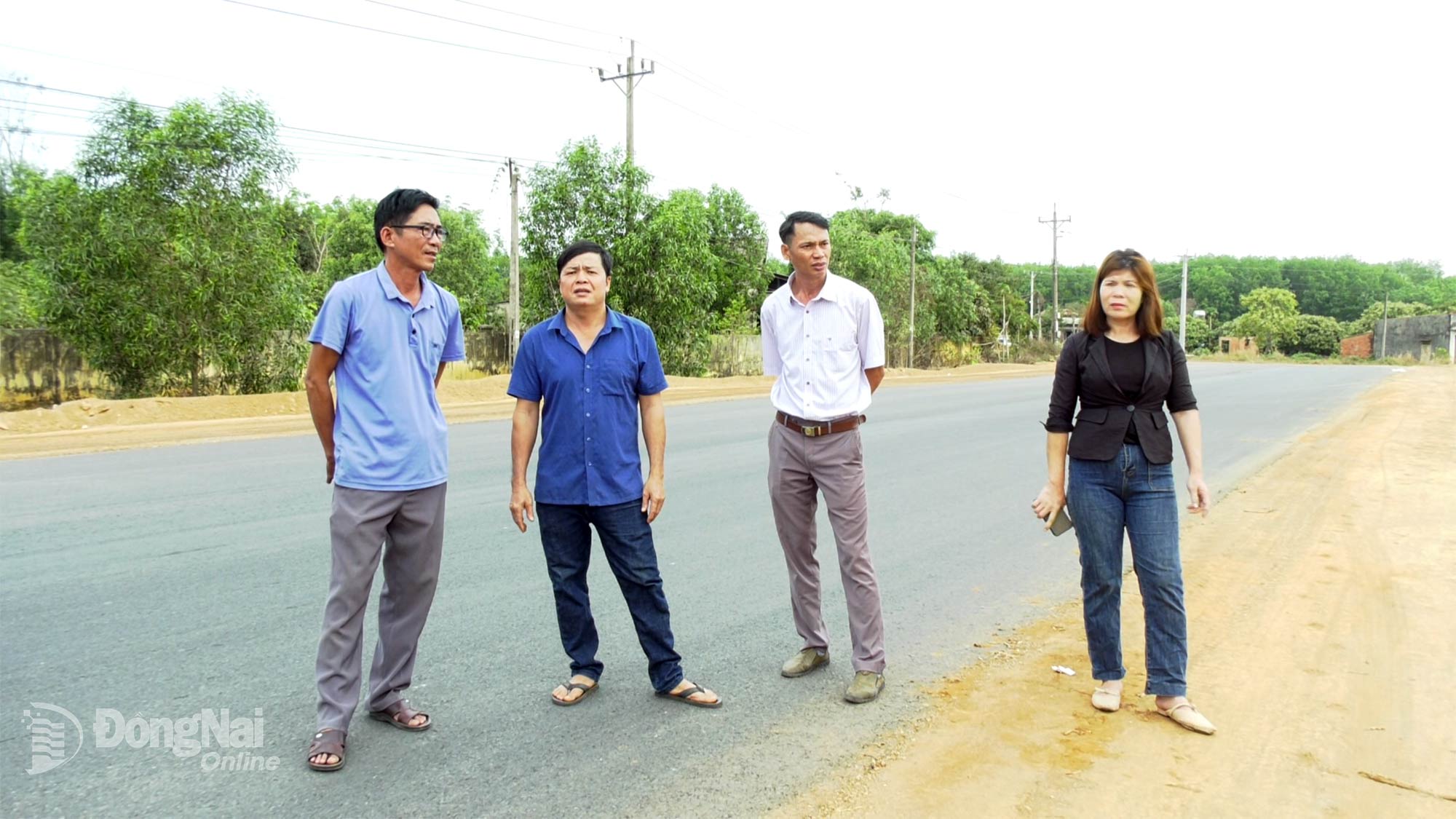 | Ông La Văn Sanh (thứ 2 từ trái qua) trên phần đất gia đình đã hiến để làm đường. Ảnh: Minh Hiền |