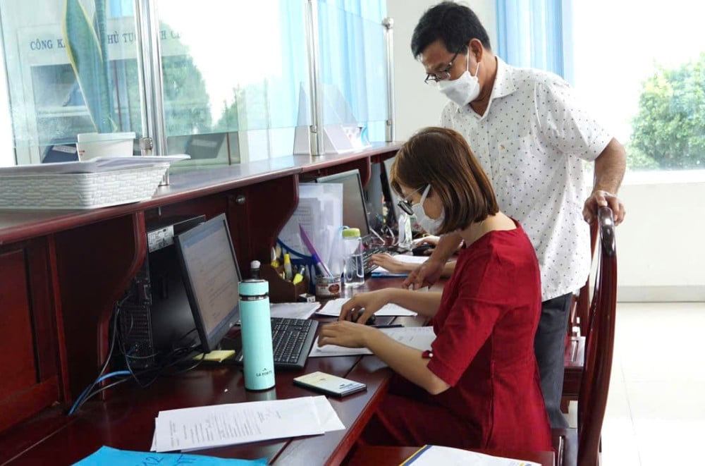 Người nộp thuế được nhân viên thuế hỗ trợ khai thuế điện tử (Ảnh: Thúy Hằng)