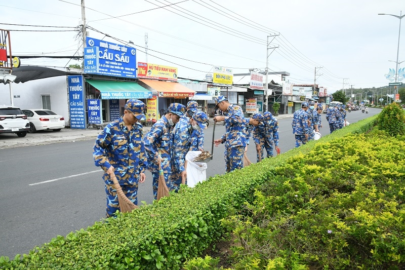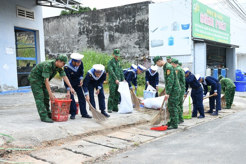 Cán bộ, chiến sĩ Bộ Tư lệnh Vùng 5 Hải quân đã cùng với đoàn viên, thanh niên, cán bộ, công chức công đoàn, các tổ chức, doanh nghiệp, lực lượng vũ trang, học sinh và nhân dân trên địa bàn tổng dọn môi trường, phát quang bụi rậm, cắt tỉa cây xanh che khuất tầm nhìn, vệ sinh đường giao thông, bóc, xóa quảng cáo, rao vặt, tờ rơi sai quy định gây mất mỹ quan đô thị.