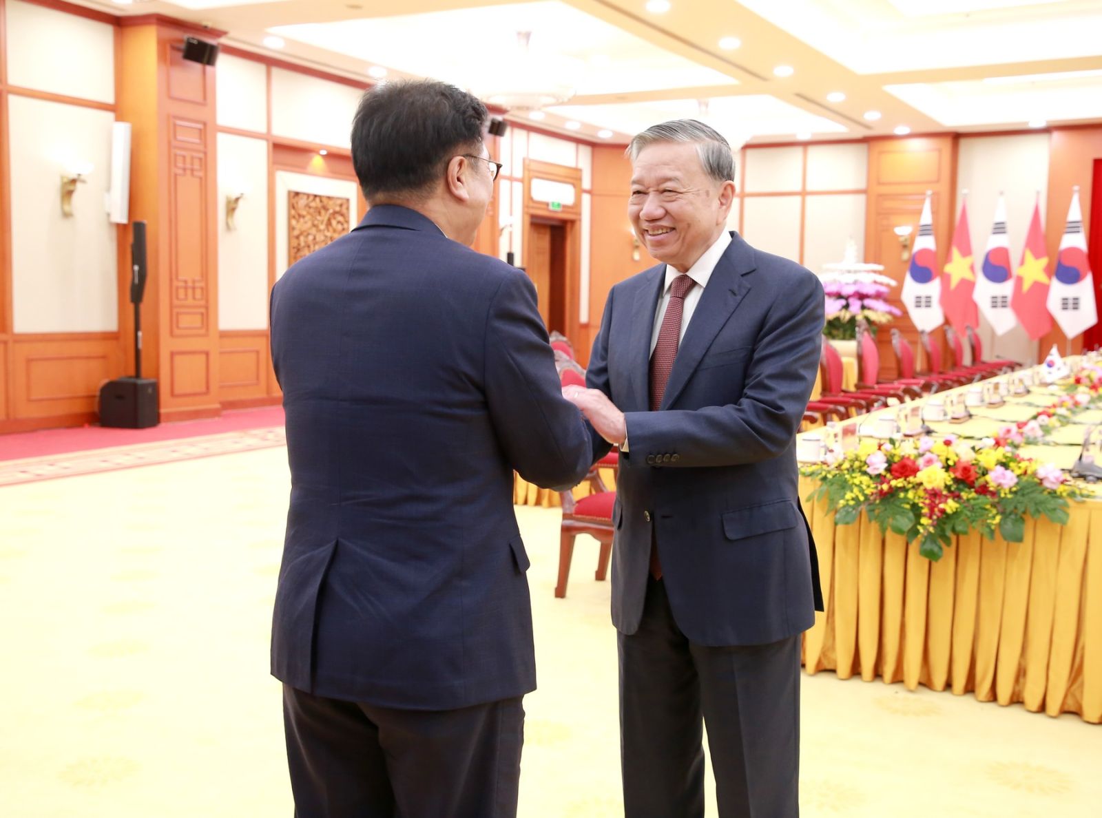 Secretaris-generaal To Lam was verheugd om de voorzitter van de Nationale Vergadering van de Republiek Korea , Woo Won Shik, te mogen verwelkomen in Vietnam.