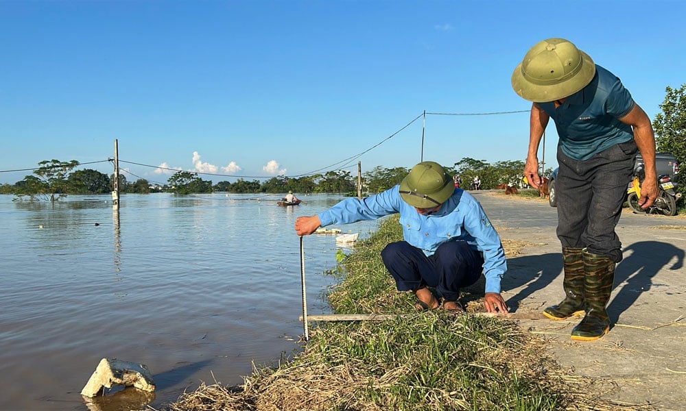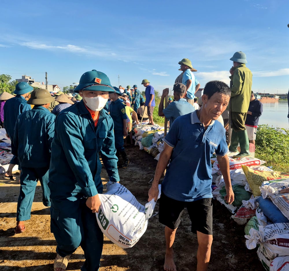 Volgens de lokale bevolking is het waterpeil van de Cau-rivier dit jaar hoger dan dat van de historische storm Yagi vorig jaar. Als reactie op deze situatie heeft de gemeente troepen gemobiliseerd om dijken te bouwen om overstromingen op sommige plaatsen langs de linkerdijk van de Cau-rivier in de dorpen Huong Ninh en Da Hoi te voorkomen.