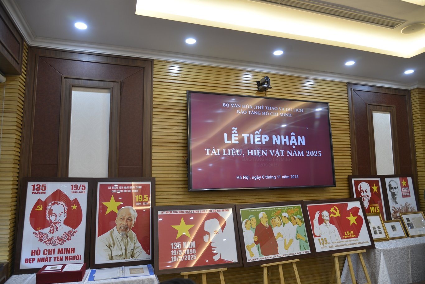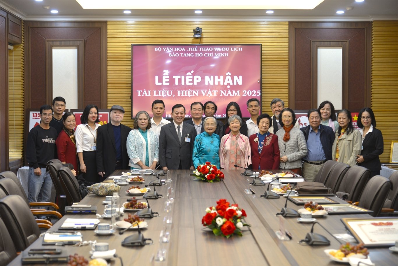Volksgezondheid Hoang Tich Try en een aantal medisch personeel in de Viet Bac oorlogszone, vóór 1954; Foto's van president Ho Chi Minh met kinderen tijdens de ceremonie ter ere van de oprichting van de Vietnamese Arbeiderspartij, het Lien-Viet Front en de Alliantie Vietnam-Cambodja-Laos, in Viet Bac, op 3 maart 1953; Muziekmanuscripten en songteksten van enkele liederen over president Ho Chi Minh, gecomponeerd door de muzikant Tran Hoan; Foto's van president Ho Chi Minh en vertegenwoordigers van enkele organisaties die hem feliciteren met zijn 60e verjaardag, in Viet Bac, 1950); Enkele kopieën van de tekst van de Onafhankelijkheidsverklaring van de Democratische Republiek Vietnam van 2 september 1945 en de krant Cuu Quoc, afkomstig uit enkele archieven van de Franse Republiek en Vietnam. Daarnaast ontvangt het museum ook de winnende propagandaschilderijen van de Propaganda Schilderwedstrijden ter ere van de 135e verjaardag van president Ho Chi Minh (19 mei 1890 - 19 mei 2025), de 110e verjaardag van oom Ho's vertrek om het land te redden (5 juni 1911 - 5 juni 2021) en de 75e verjaardag van de Nationale Dag van het Verzet (19 december 1946 - 19 december 2021), georganiseerd door het Ministerie van Cultuur, Sport en Toerisme. De geschonken documenten, foto's en schilderijen vormen stuk voor stuk waardevolle informatiebronnen en leveren een belangrijke bijdrage aan de collectie, het behoud, het onderzoek en de tentoonstellingen van het Ho Chi Minh Museum.