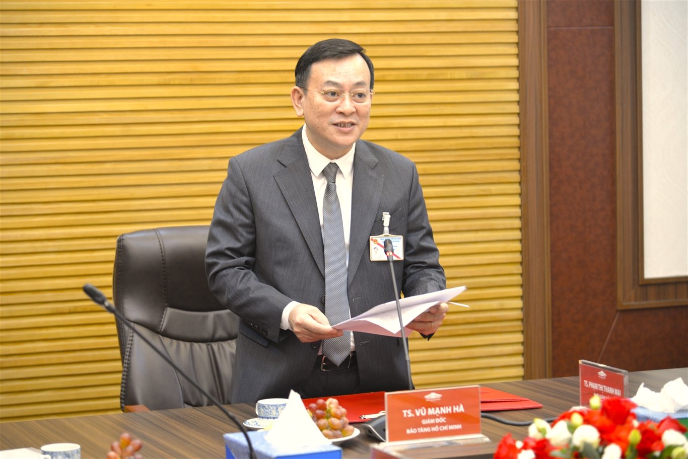 Dr. Vu Manh Ha, partijsecretaris en directeur van het Ho Chi Minh Museum, sprak tijdens de receptieceremonie. Foto: BTHCM