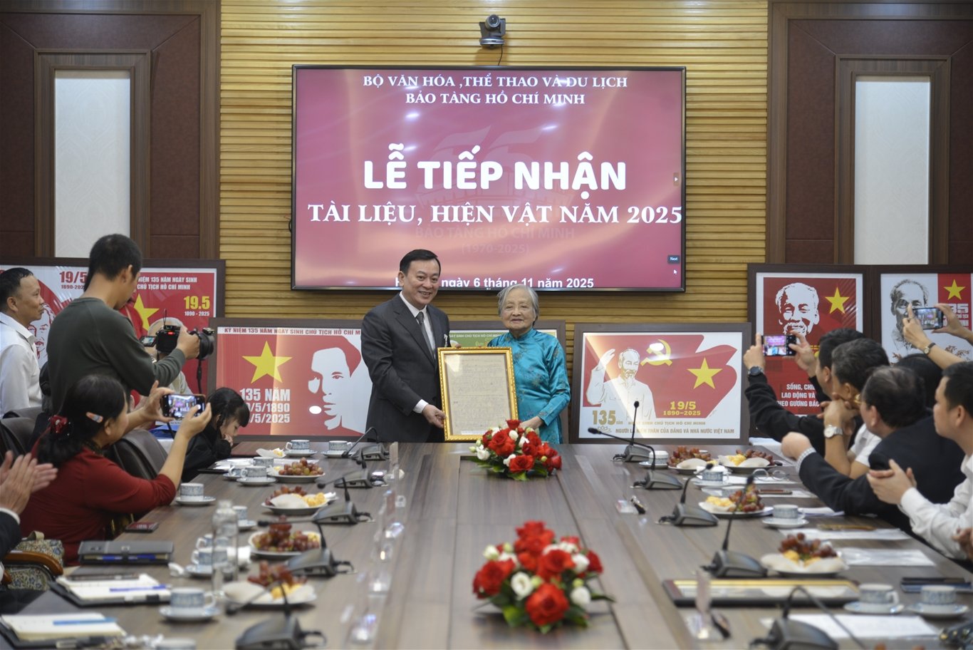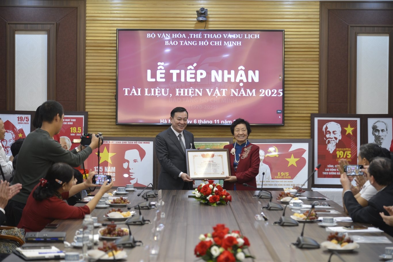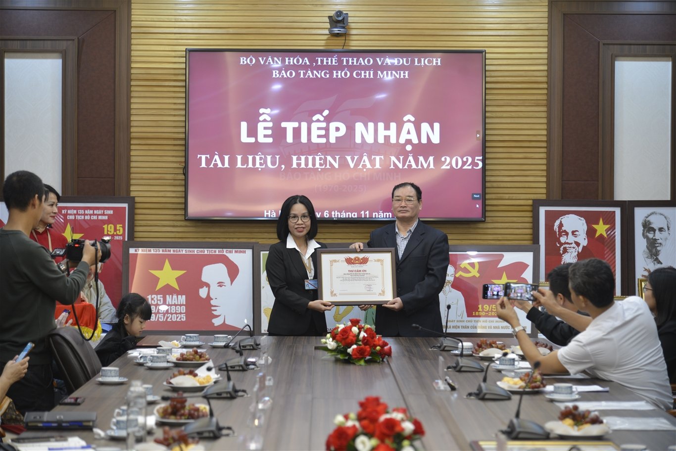 Bij deze gelegenheid overhandigde het Ho Chi Minh Museum een bedankbrief en souvenirs aan vertegenwoordigers van de families en kunstenaars, waarmee de waardevolle bijdragen van de eigenaren van de artefacten aan het behoud en de verspreiding van de historische en culturele waarden van president Ho Chi Minh werden erkend.