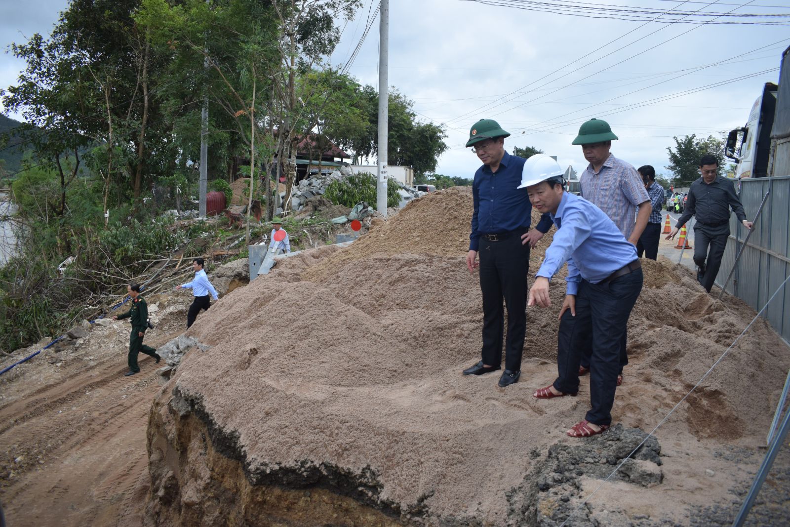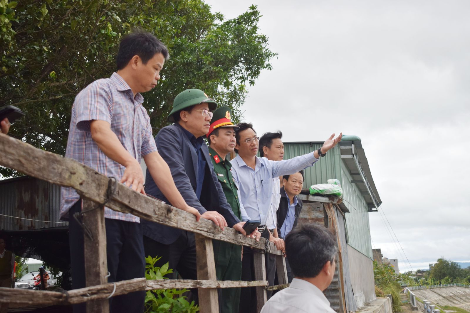 Vervolgens inspecteerde de werkdelegatie van de voorzitter van het Provinciaal Volkscomité, Pham Anh Tuan, direct de feitelijke situatie in veel gebieden die getroffen waren door aardverschuivingen en overstromingen in de gemeenten na de aanhoudende periode van hevige regenval en overstromingen. De delegatie inspecteerde met name de dijk om aardverschuivingen op rivieroevers en beken in de gemeente Po To te voorkomen; inspecteerde de ondergrondse overloop van het dorp Mo Nang 2 (gemeente Ia Pa); inspecteerde de reparatiewerkzaamheden aan de Quy Duc-brug, het gedeelte dat de wijk Ayun Pa verbindt met de gemeente Ia Pa; inspecteerde de beschadigde en aardverschuivingspunten in de gemeente Ia Tul en de overstroomde gebieden in het dorp Ju (gemeente Ia Tul); onderzocht de overstroomde gebieden in het dorp Nu (gemeente Uar) en de locaties van aardverschuivingen in de gemeente Ia Rsai. De werkdelegatie bracht ook veldbezoeken aan gebieden waar hervestigingsplaatsen voor mensen zouden worden gebouwd.