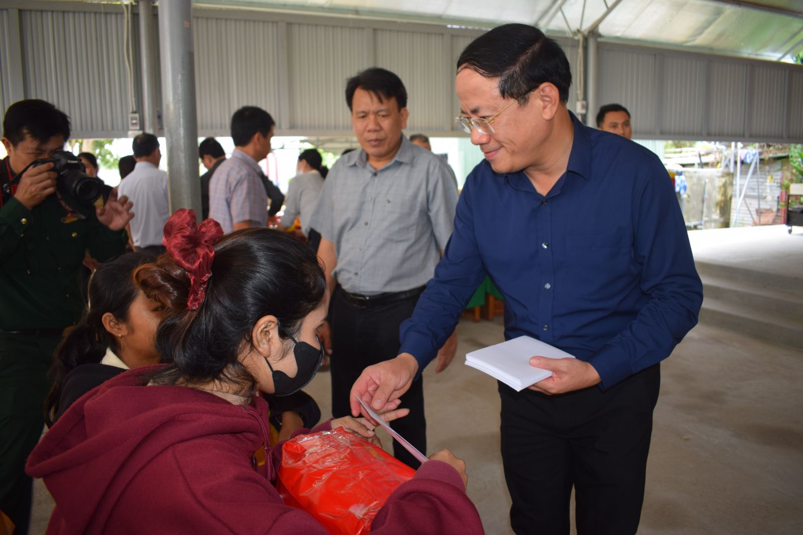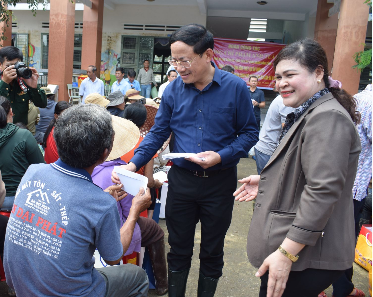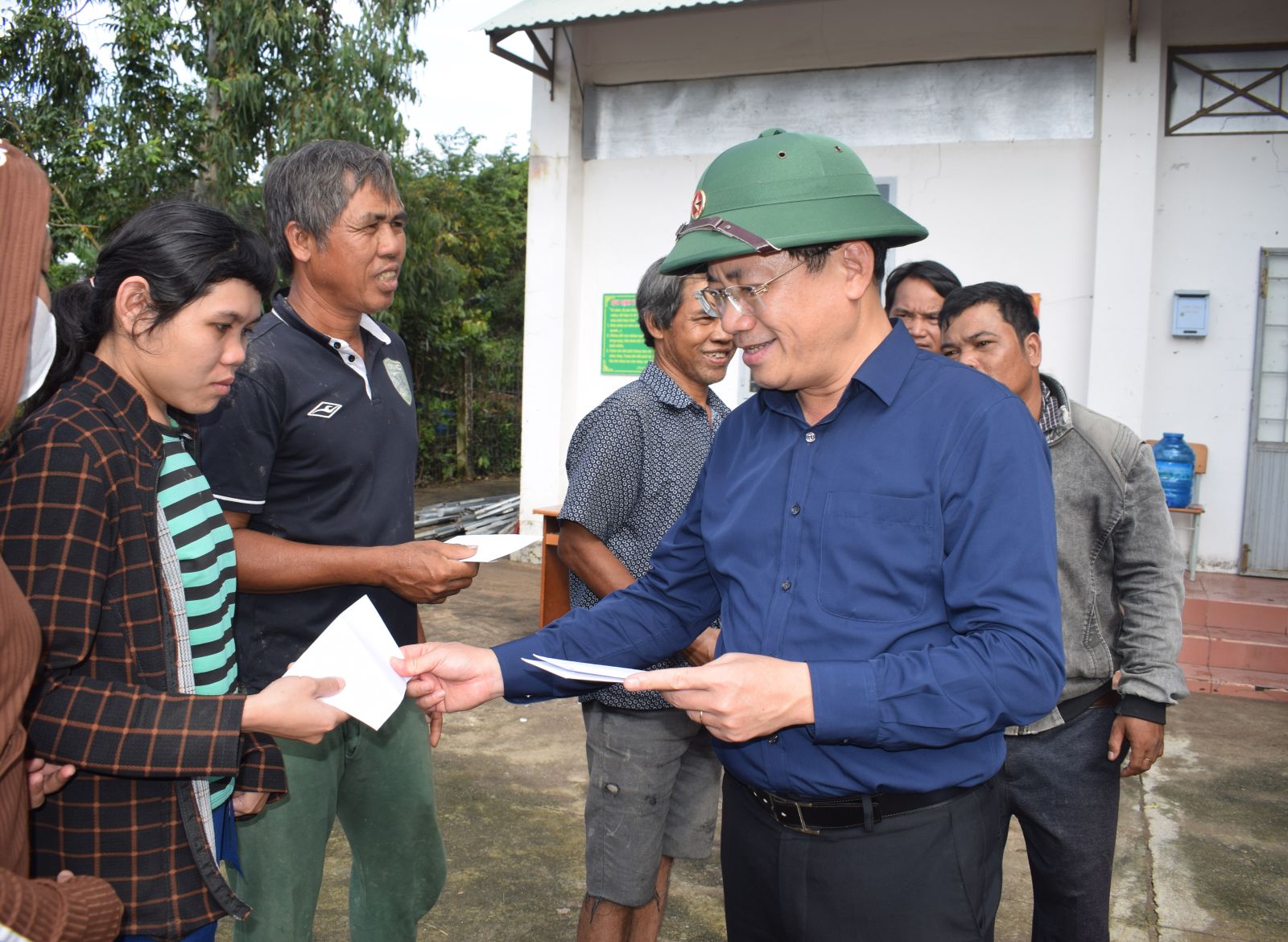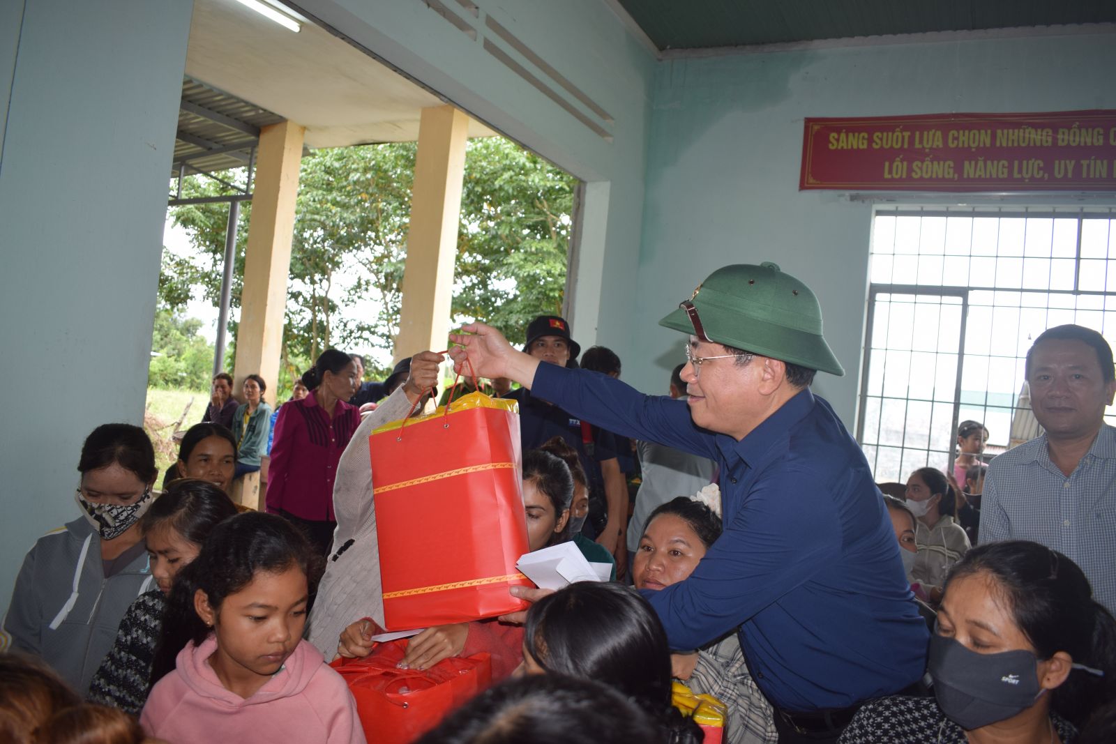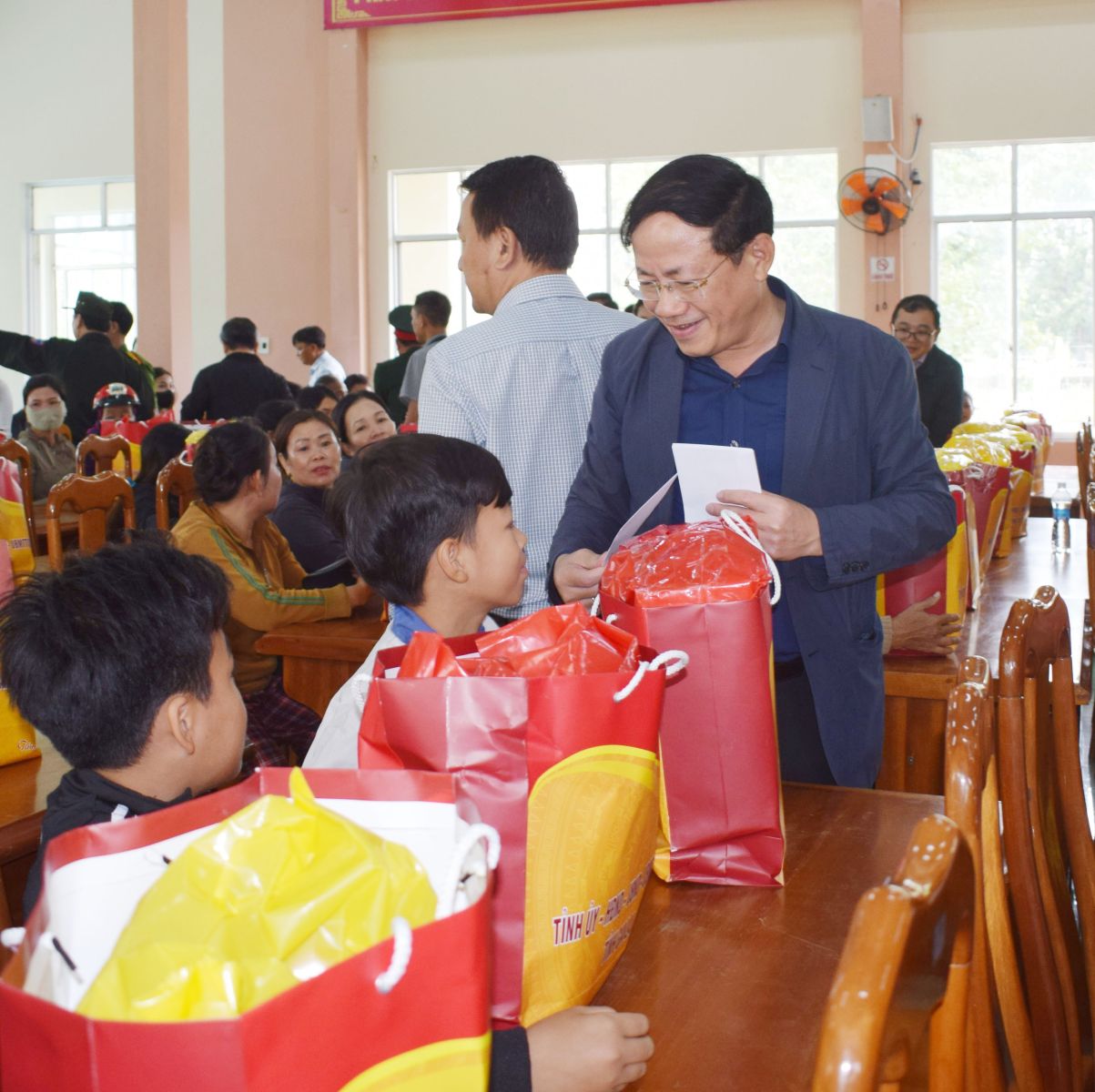 Op de plekken die hij bezocht en waar hij geschenken uitdeelde, informeerde de voorzitter van het Provinciaal Volkscomité, Pham Anh Tuan, vriendelijk naar de levens en gezondheid van de mensen. Ook deelde hij de moeilijkheden met mensen die zware verliezen hadden geleden na storm nr. 13 en de recente overstromingen.