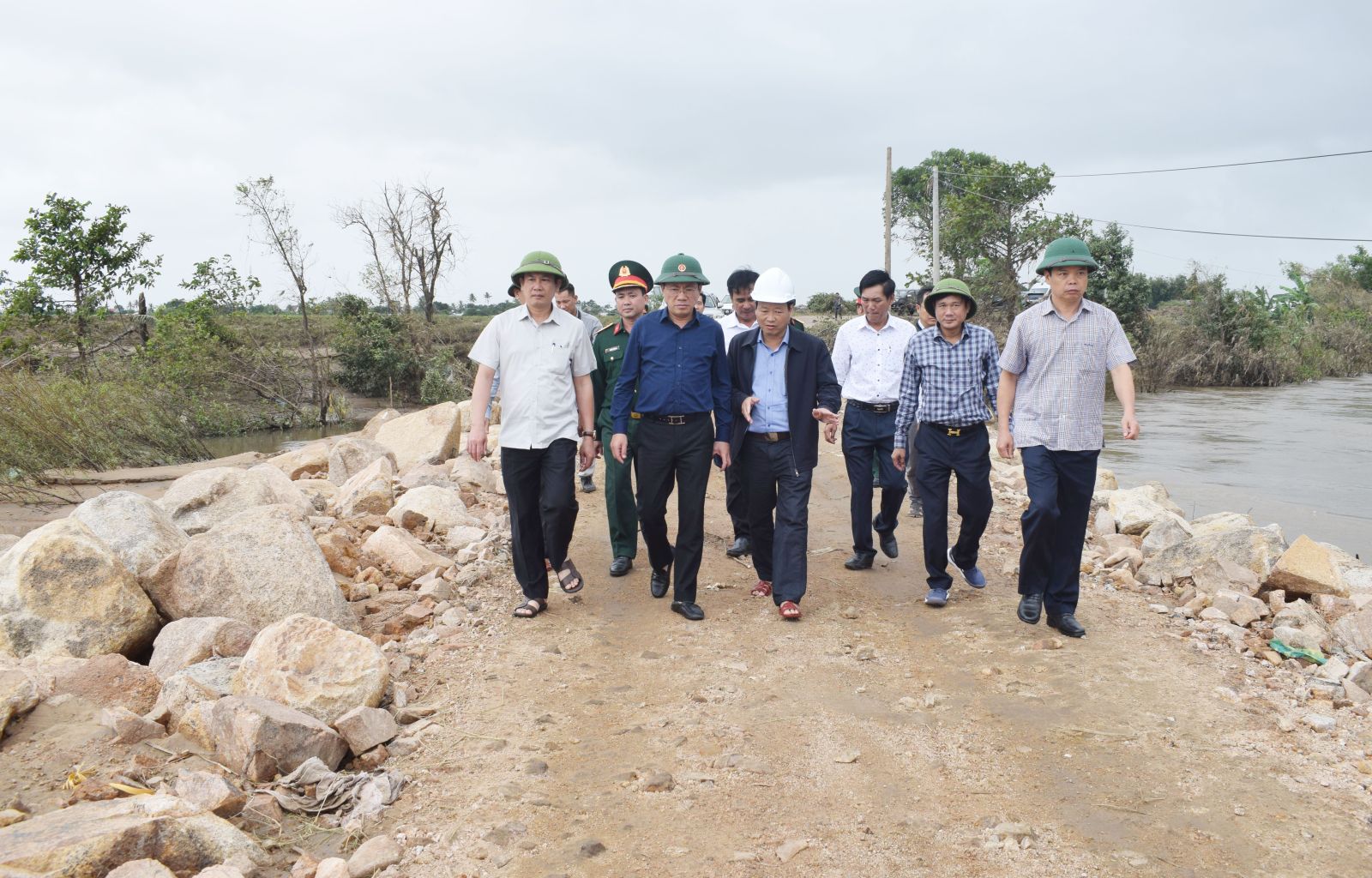 De voorzitter van het Provinciaal Volkscomité, Pham Anh Tuan, erkende en waardeerde de inspanningen van de lokale overheden om het gehele politieke systeem te mobiliseren en zo effectief het motto "4 ter plaatse" in de praktijk te brengen. Hierbij werd met de grootste vastberadenheid gereageerd op stormen en overstromingen en werd de schade aan mensen en eigendommen tot een minimum beperkt.