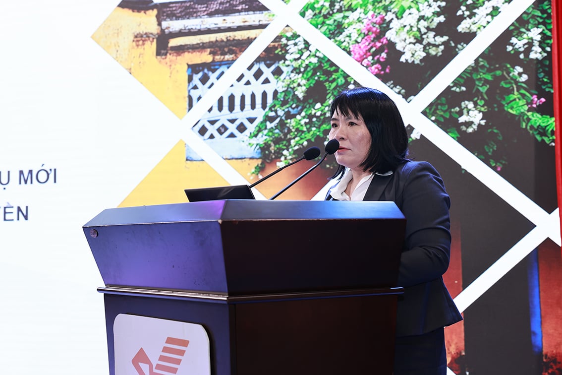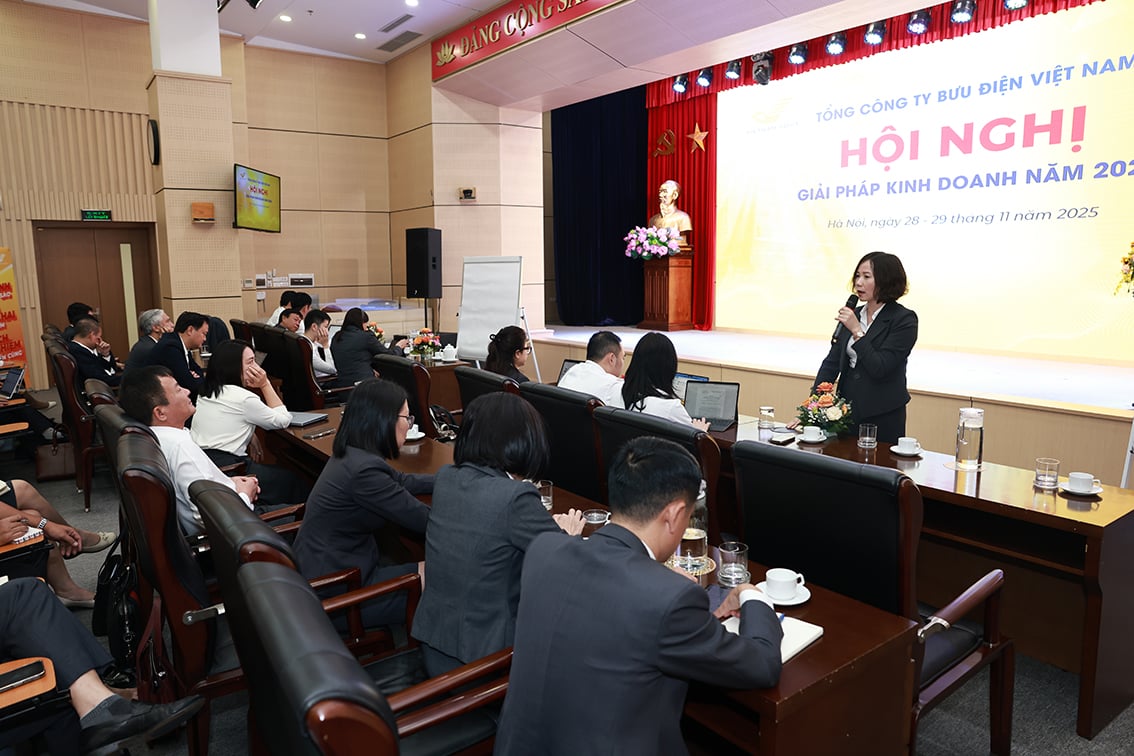 Mevrouw Le Thi Ha Nhung, directeur van het provinciaal postkantoor van Dong Nai en hoofd van themagroep 03, presenteerde oplossingen op de conferentie.