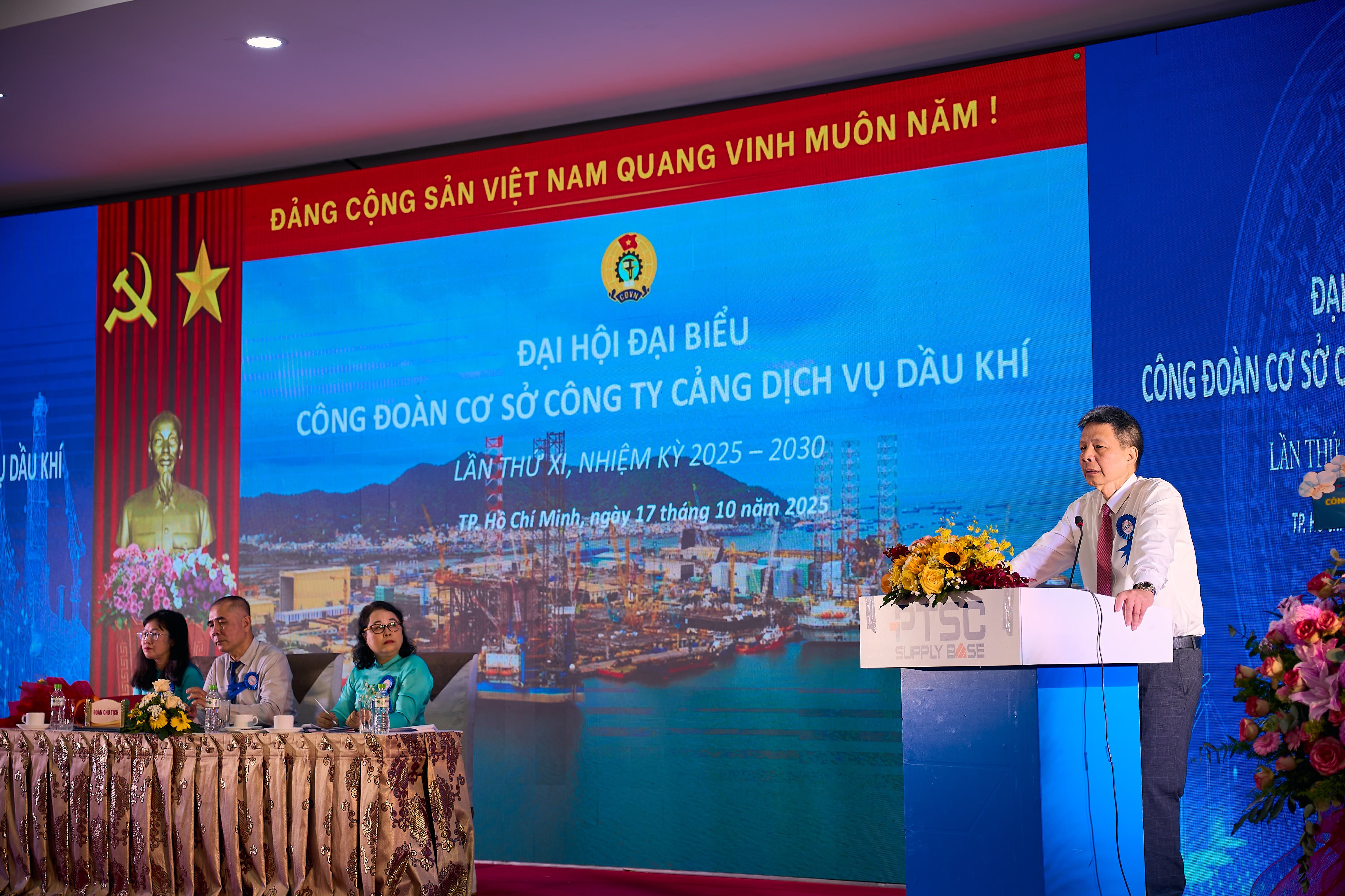 Tijdens het congres presenteerde kameraad Nguyen Viet Dat, voorzitter van de vakbond van het bedrijf, een samenvattend verslag over de activiteiten voor de periode 2023-2025 en de richtlijnen en taken voor de periode 2025-2030. Gezien de vele schommelingen in productie en bedrijfsvoering heeft de vakbond van het bedrijf de geest van initiatief en creativiteit bevorderd en het management begeleid om moeilijkheden te overwinnen en zich flexibel aan te passen aan de nieuwe situatie. Deze periode is met name een periode van grote verandering in het havengebied, toen PTSC Corporation investeerde in de uitbreiding en ontwikkeling van de offshore hernieuwbare energiesector. De vakbond heeft zich gericht op de zorg voor het materiële en spirituele leven, de bescherming van de legitieme en wettelijke rechten van werknemers; het behoud en de stimulering van werknemers om deel te nemen aan emulatiebewegingen, culturele en sportieve activiteiten, en veiligheid en hygiëne op het werk; en tegelijkertijd actief deel te nemen aan socialezekerheids- en maatschappelijke liefdadigheidsprogramma's, en zo bij te dragen aan het opbouwen van het imago van PTSC-medewerkers als "Verantwoordelijk - Creatief - Gedisciplineerd - Meelevend".