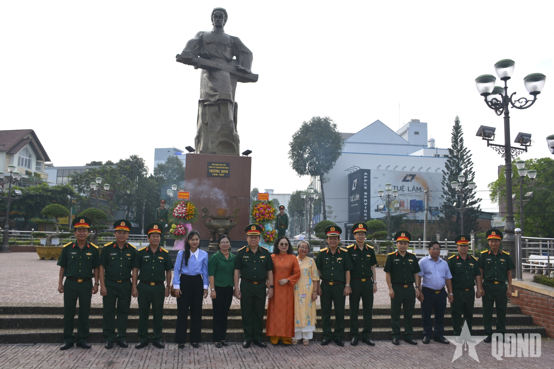 Generaal Nguyen Trong Nghia en de delegatie offerden bloemen en wierook op de begraafplaats van de martelaren van Go Cong Dong, de tempel van de martelaren van Go Cong, het monument en de tempel van de nationale held Truong Dinh (provincie Dong Thap).