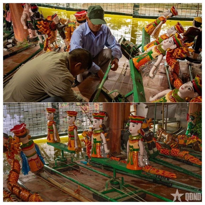 Wanneer de traditionele muziek klinkt, lijken de houten poppen een ziel te hebben. Ze glijden snel over het wateroppervlak, onder de bekwame controle van de ambachtslieden die zich achter de bamboegordijnen verschuilen. Achter de flexibiliteit en levendigheid van elke pop gaat een proces van hard werken, goede coördinatie en bekwame techniek schuil. Ze bewegen vakkundig, trekken aan de touwtjes, creëren ritmische bewegingen, blazen elk houten personage tot leven en reconstrueren volksverhalen en taferelen uit het dagelijks leven op het Vietnamese platteland op een levendige en aantrekkelijke manier.