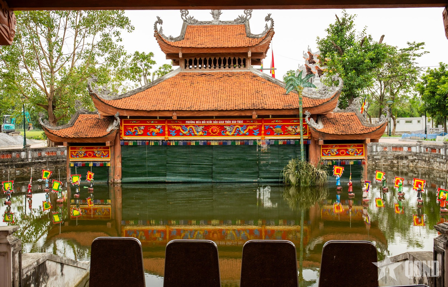 Waterpoppenpodium waar waterpoppenspel wordt opgevoerd in het poppendorp Dao Thuc. |