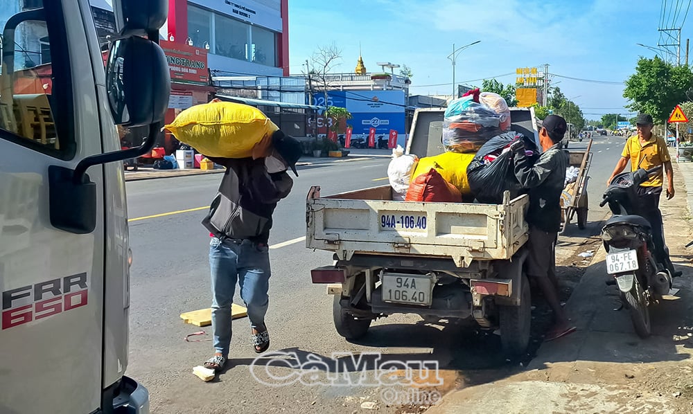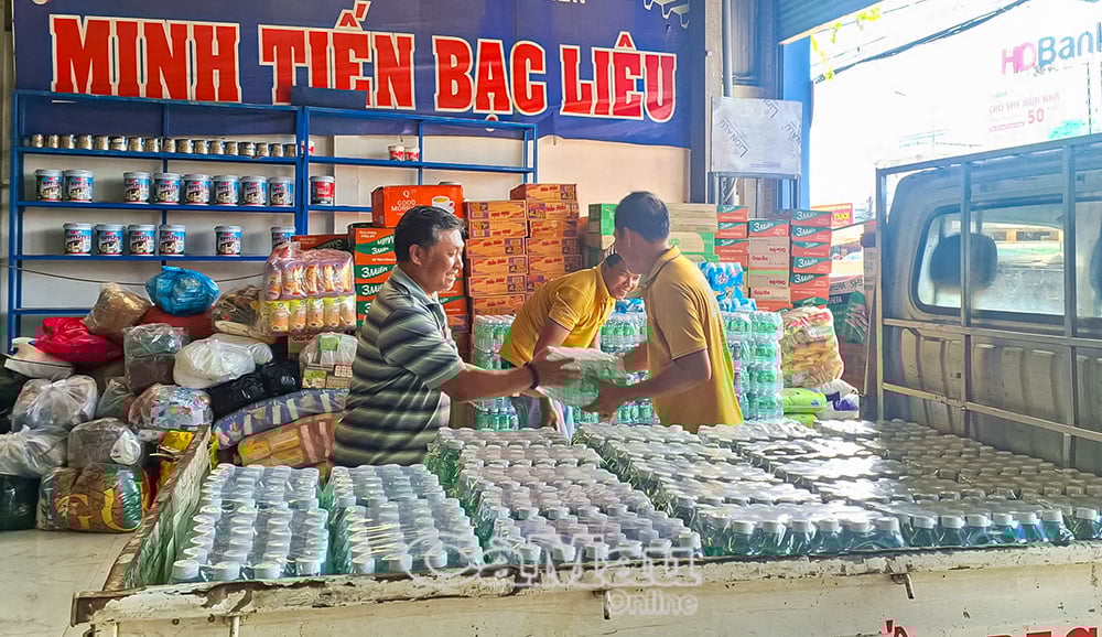 Vrachtwagens met goederen bleven de een na de ander binnenkomen. Iedereen was druk en gehaast, maar niemand was moe. Handen laadden en losten snel vaten water, zakken rijst, dozen noedels, zakken kleding..., allemaal uitingen van de genegenheid van de inwoners van Ca Mau voor hun landgenoten in de Centrale regio die in de problemen zaten.