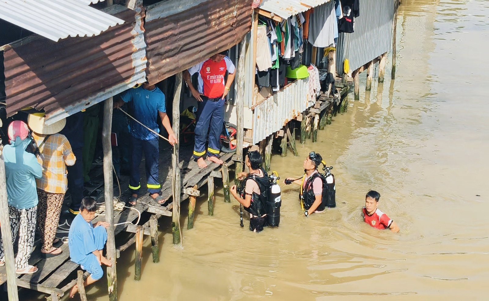 Toen de politie van An Bien Commune het nieuws ontving, coördineerde ze de brandpreventie-, brandbestrijdings- en reddingsdienst van het gebied U Minh Thuong om duikers en speciale voertuigen te mobiliseren om met spoed een zoekactie uit te voeren.
